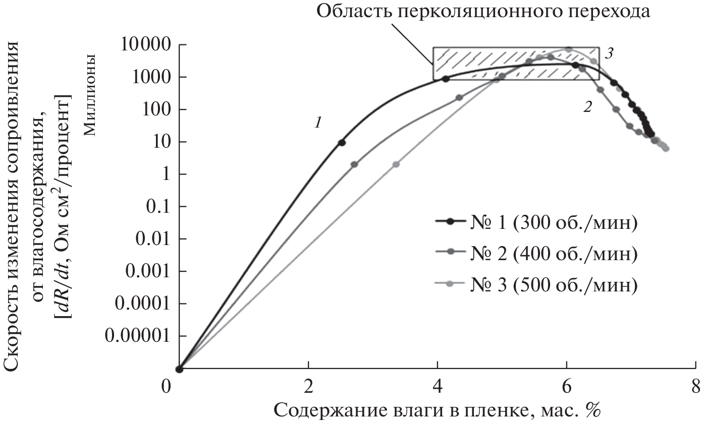 The effects are described of the influence of the particle size of a sulfonic cation exchanger in nickel form introduced into the epoxy binder on the sensory characteristics of the resulting moisture-sensitive system. The introduced filler was crushed on a planetary mill by changing the speed of the glass (300, 400, and 500 rpm). It is shown that differences in the conditions of mechanical processing of the filler cause changes in the permeability of the resulting systems, while the moisture-sensitive characteristics of the obtained films also depend on the fractional composition. The obtained values of the flow parameters (percolation) are consistent with the theoretical values for spherically overlapping particles, while the critical fraction of the conducting phase is smaller for systems with larger particles due to the early formation of transport paths. These data indicate that varying the particle size of the active filler in the sensor system creates the possibility of a directed change in its performance. The size factor can be used to create self-adjusting protective coatings with improved weather resistance and a high protective resource.