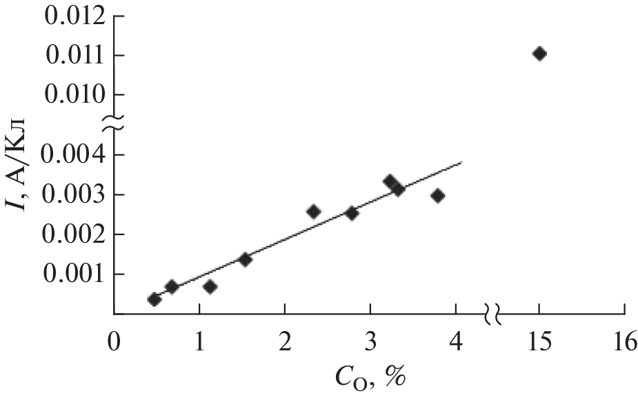 The effect of the oxygen content in tantalum powders of different natures on the leakage currents of capacitor anodes has been examined. It has been established that the leakage current in the anodes from magnesium thermal powders with a highly developed surface depends on the oxygen content in them more weakly than in anodes from powders consisting of fragmented particles, which have a smaller surface area. This is explained by the fact that, during sintering of the anodes from powders with a large specific surface, the majority of the oxygen of the natural oxide interacts with the metal with the formation of Ta2O5 particles outside the tantalum particle volume.