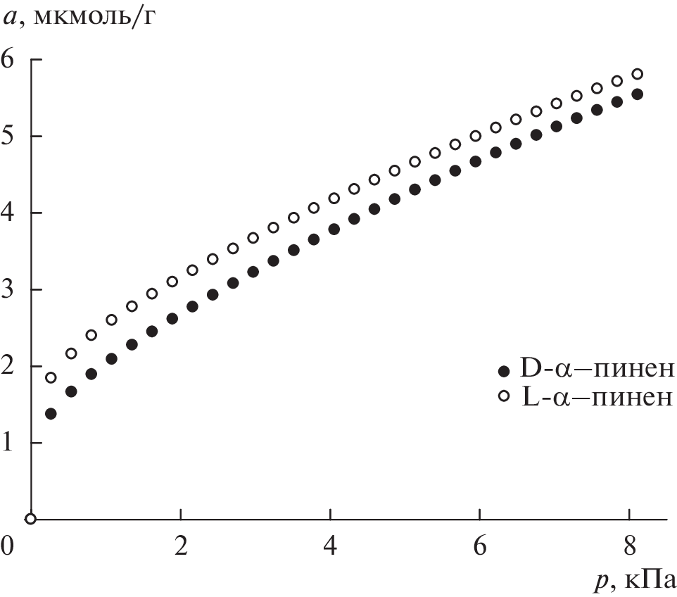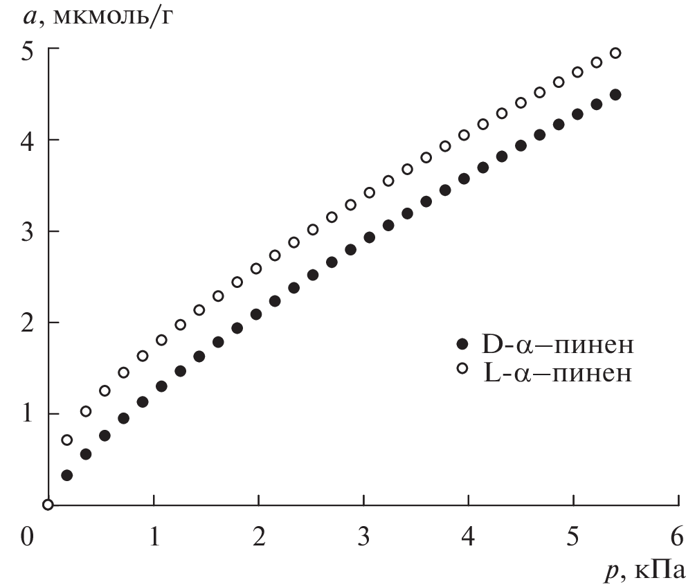 The work is devoted to the study of the capacity for chiral recognition during the adsorption process of hippuric acid crystals obtained by the temperature gradient method under Viedma ripening conditions. This method is distinguished by the fact that the primary violation of chiral equilibrium between the nuclei formed during crystallization is not caused by the mechanical action of the stirrer but by crystallization at low temperatures. Limonenes and α-pinenes were used as test enantiomers. Adsorption isotherms were obtained using inverse gas chromatography, and their analysis made it possible to establish the chiral recognition ability of the surface. It was shown that both the enantioselectivity and adsorption capability of the synthesized hippuric acid crystals were significantly higher than those of crystals obtained under classical Viedma ripening conditions. High surface heterogeneity is probably the reason for this phenomenon.