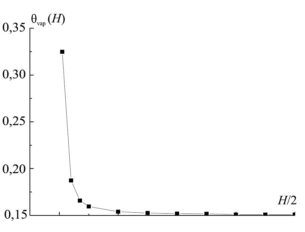 Согласно рис. 1 с уменьшением размера поры Н увеличивается плотность парообразного аргона в ее центре. Аналогичные результаты были получены и для жидкого аргона, однако диапазон изменения плотности жидкого аргона на один-два порядка ниже.