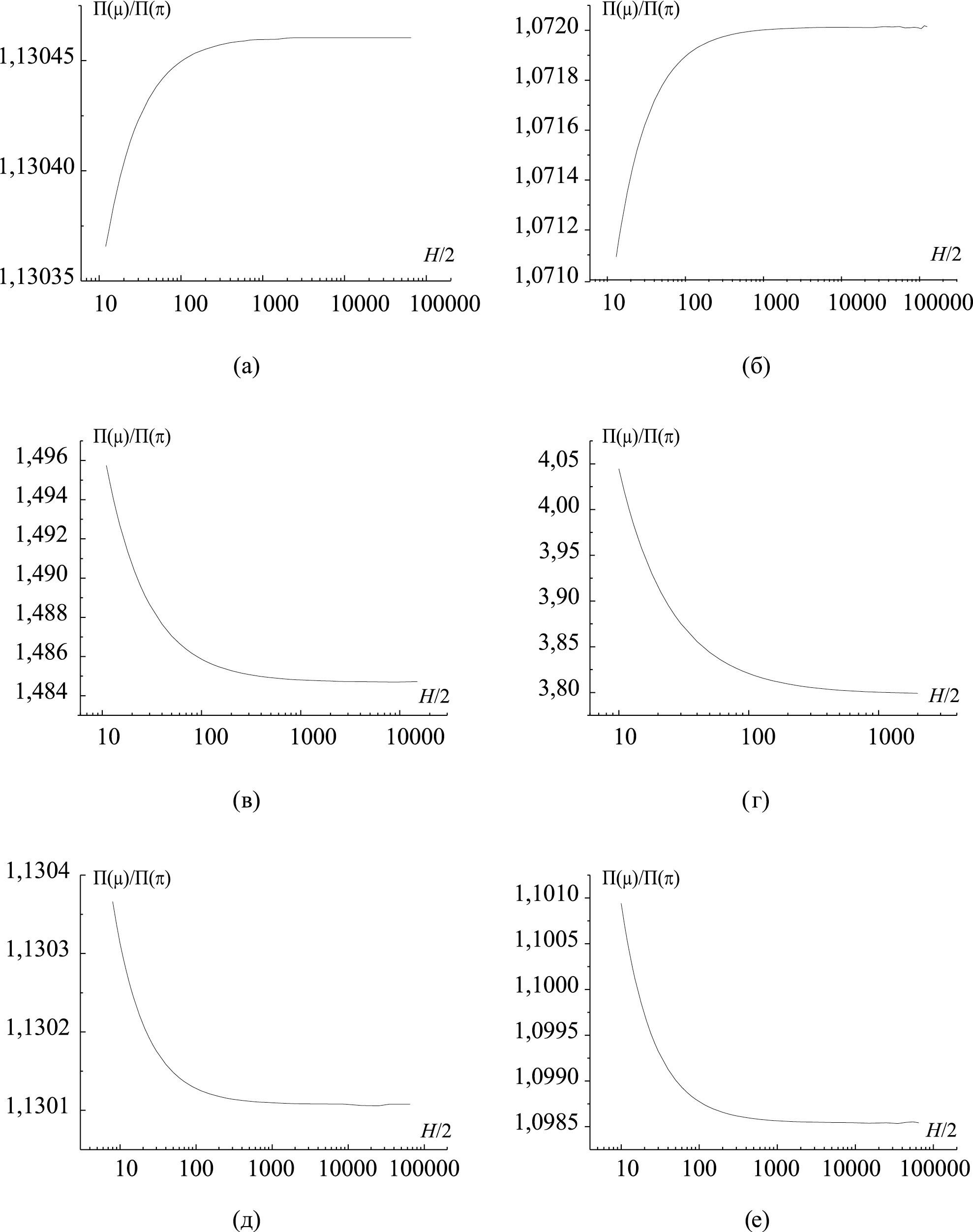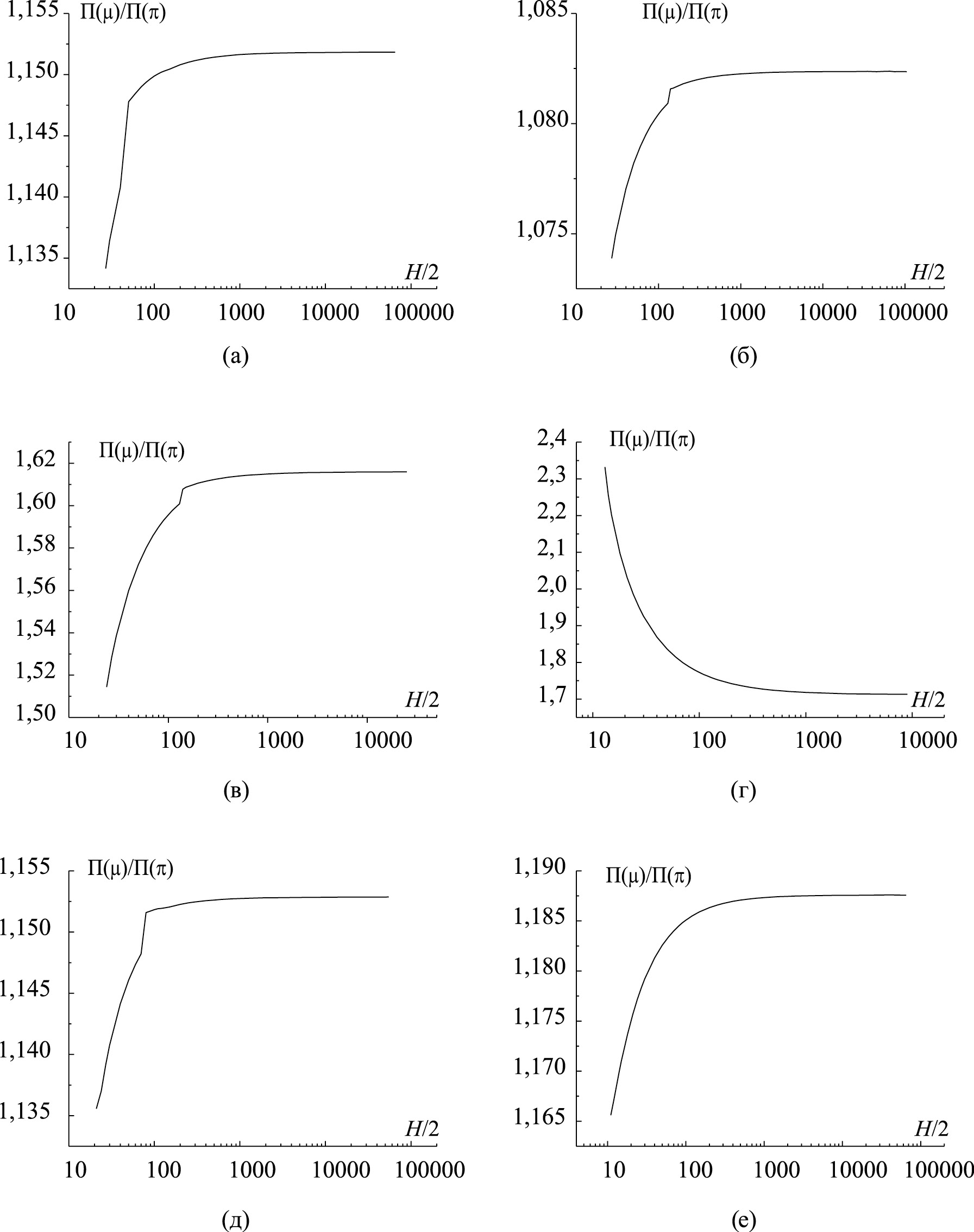 Согласно рис. 4 и 5, рассматриваемый коэффициент в отношении расклинивающего давления по разным определениям в цилиндрической поре, убывает с уменьшением ее диаметра Н в случае больших потенциалов поля стенки, например c Q = 5 (см. рис. 4а для жидкости и 5а для пара) и 9.2 (см. рис. 4б для жидкости и 5б для пара).