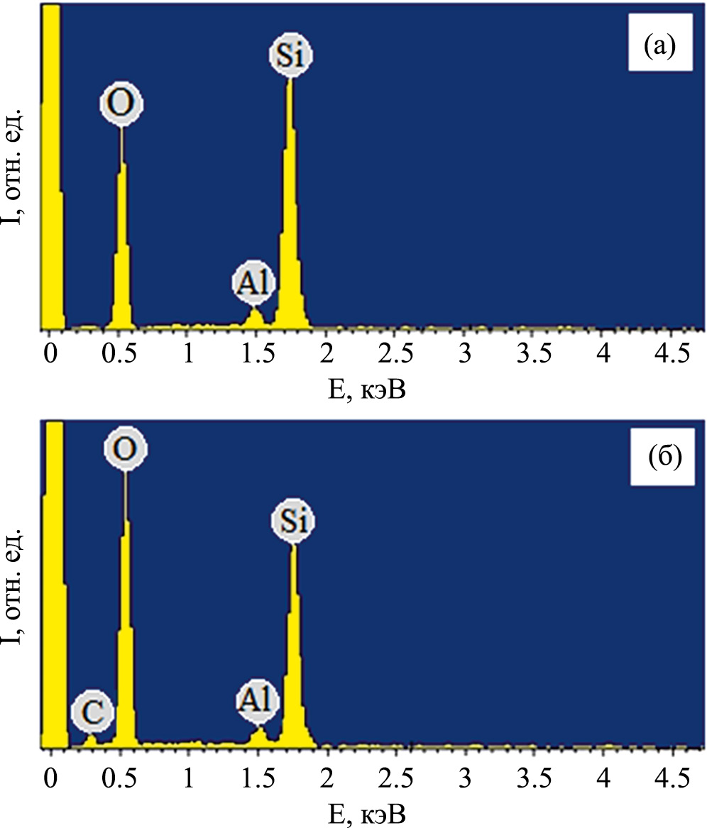 Морфологические исследования методом СЭМ в характеристическом излучении кислорода, алюминия и кремния показали их равномерное распределение по поверхности адсорбентов (рис. 2).