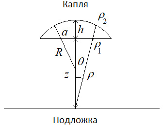 где – объемная концентрация атомов капли (м–3), z – расстояние между каплей и подложкой, a и h – радиус основания и высота капли, которые связаны между собой соотношением: . Чтобы проинтегрировать (4), сделаем замену . Далее запишем