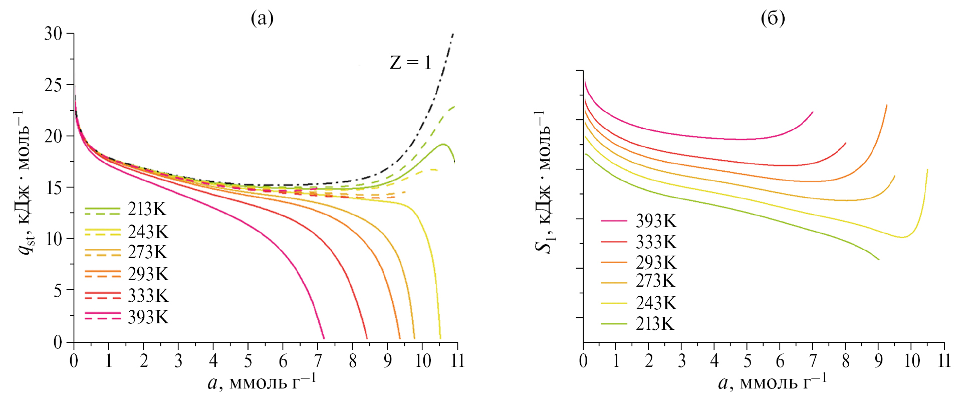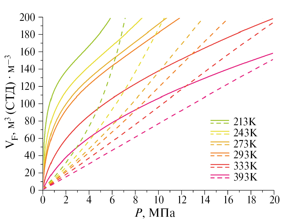 Для оценки адсорбции метана во всем диапазоне температур от 213 до 393 K и при давлении до 20 МПа мы использовали ранее разработанный и опробированный подход, учитывающий адсорбцию метана как в микро-, так и в мезопорах [48]: