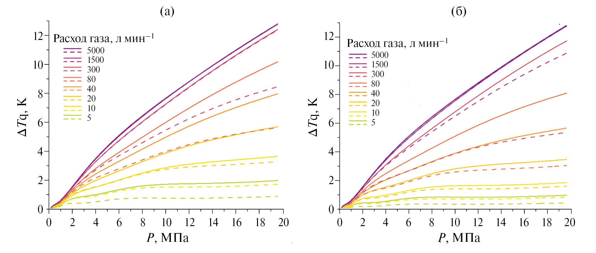 Мы оценили корректность использования обеих формул для описания полноразмерной системы АПГ, сравнив результаты моделирования на основе термодинамических параметров, рассчитанных по обоим уравнениям, и попытались выяснить, как неучет зависящих от температуры вкладов от неинертности адсорбента и начального наклона изотермы адсорбции повлияет на корректность интегральных термодинамических характеристик, рассчитанных для моделирования реальных систем АПГ.