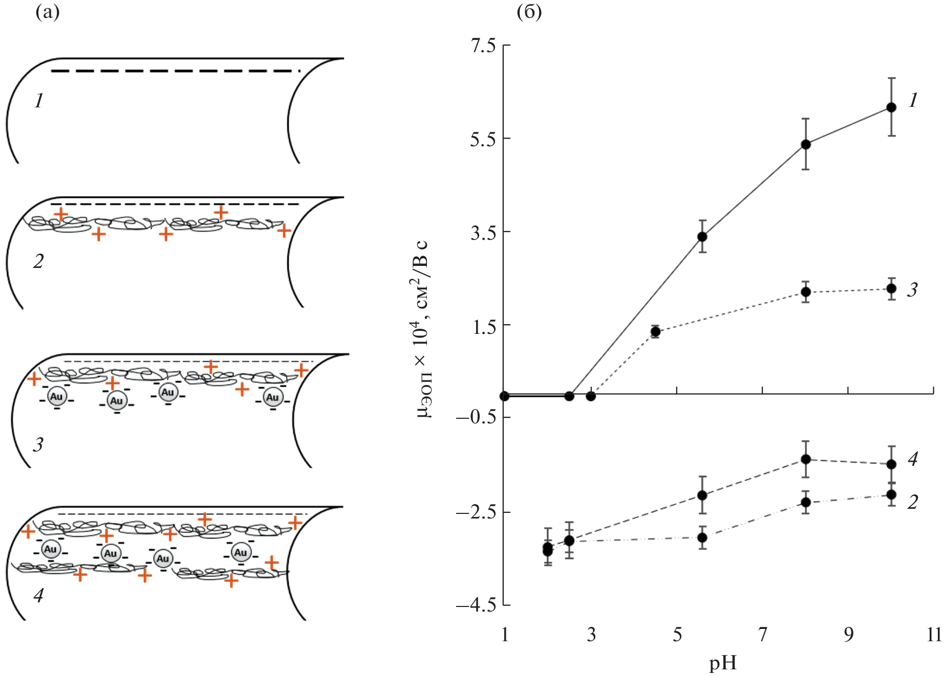 - Neiman B., Grushka E., Lev O. Use of gold nanoparticles to enhance capillary electrophoresis // Anal. Chem. 2001. V. 73. P. 5220. https://doi.org/10.1021/ac0104375