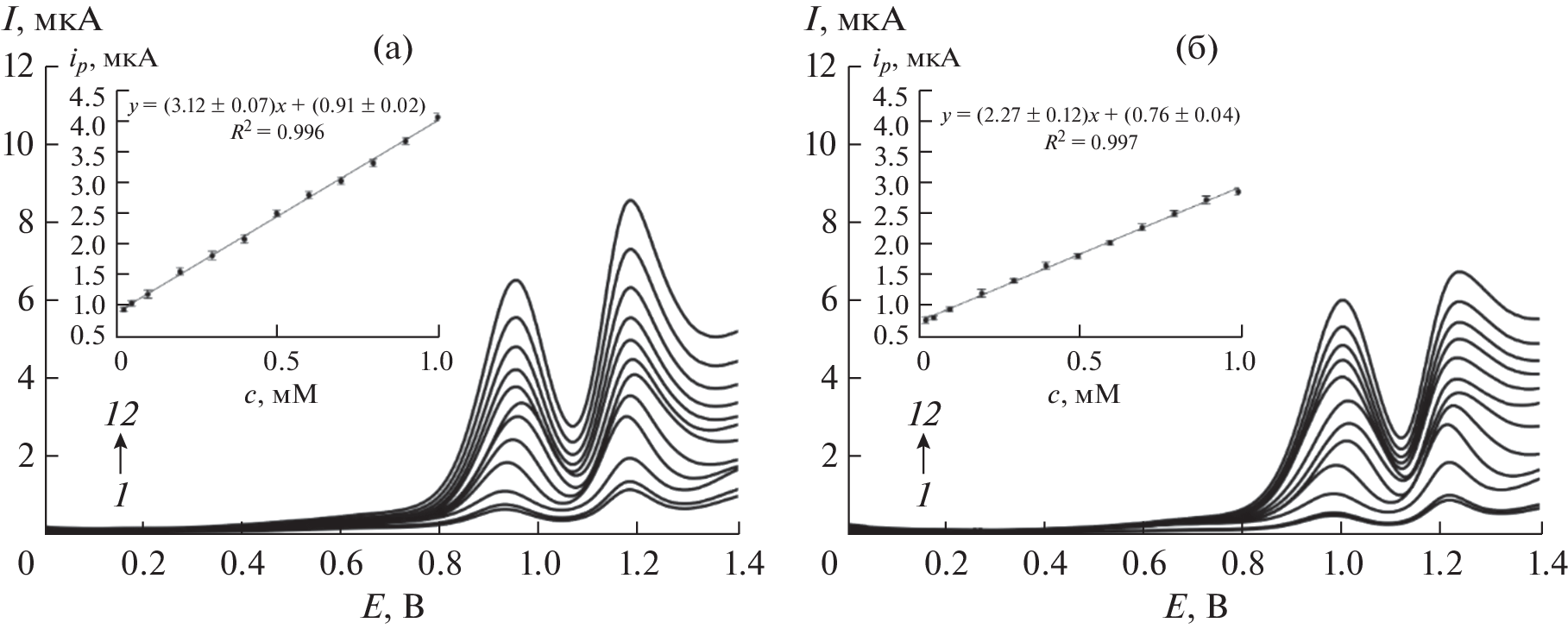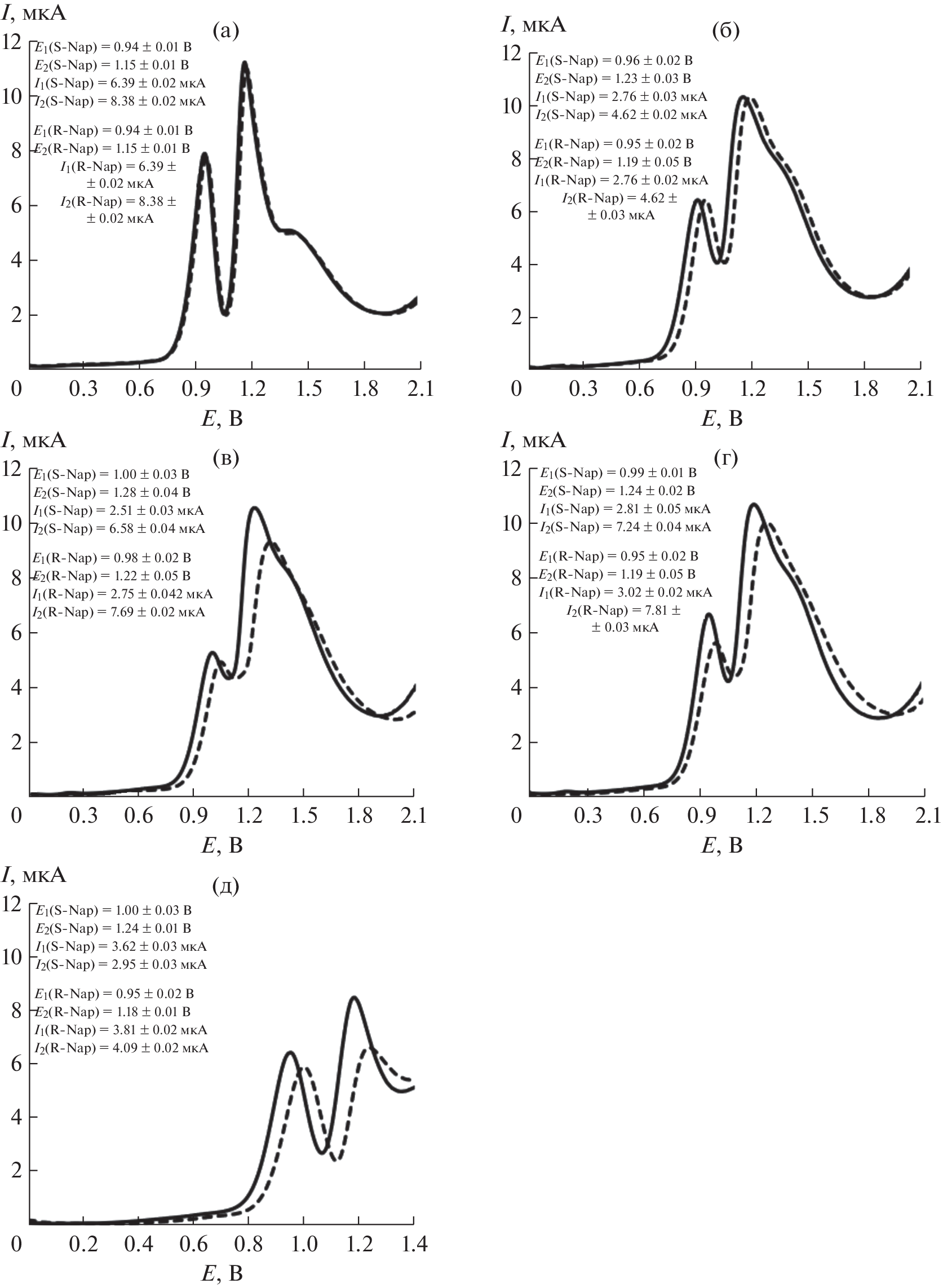 Разработан вольтамперометрический сенсор на основе стеклоуглеродного электрода с осажденным на его поверхности мелкодисперсным алюмофосфатным цеолитом, модифицированным полиэлектролитным комплексом хитозана с сукцинилхитозаном и бетулиновой кислотой, для селективного распознавания и определения энантиомеров напроксена. Изучены электрохимические и аналитические характеристики сенсора, рассчитаны площадь эффективной поверхности электрода (А = 9.8 ± 0.5 мм2) и сопротивление переноса заряда (Ret = 649.9 ± 0.4 Ом). При определении энантиомеров напроксена градуировочные характеристики линейны в диапазоне от 2.5 × 10–5 до 1 × 10–3 М с пределами обнаружения 1.1 × 10–7 и 1.5 × 10–7 М и нижними границами определяемых концентраций 3.6 × 10–7 и 4.9 × 10–7 М для R- и S-энантиомеров напроксена соответственно. Бóльшую чувствительность сенсор проявляет к R-напроксену (∆Ep = 60 мВ, ipR/ipS = 1.40). Предложенный сенсор применен для распознавания и определения энантиомеров напроксена в образцах мочи и плазмы крови человека. Статистическая оценка результатов измерений методом введено–найдено свидетельствует об отсутствии систематической погрешности.