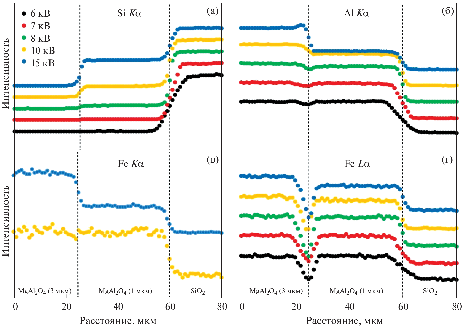 Methodological approaches to both qualitative structural analysis and quantitative compositional analysis of transparent complex oxide films on dielectric substrates, performed using a Horiba LabRAM HR800 confocal Raman spectrometer and a Cameca SX100 electron probe microanalyzer, are described. The studies were carried out using magnesium–aluminum spinel films of a thickness of 1–3 µm on a quartz glass substrate, obtained by magnetron sputtering. The characterization of the film structure consisted of recording 3D arrays of its Raman spectra based on z depth profiling. The film has a disordered spinel structure with a partially reversed distribution of Mg and Al cations over octa- and tetra-positions. Operation parameters are identified to evaluate the concentration of structure-forming elements (Mg and Al) and impurities (Ti, Cr, Ca, P, Fe, Ni, and Gd) in the film using various X-ray emission lines (optimal accelerating voltage, etc.). The performance of the procedure was determined, and its capabilities and limitations were assessed. The resulting data on the chemical composition of the film are presented.