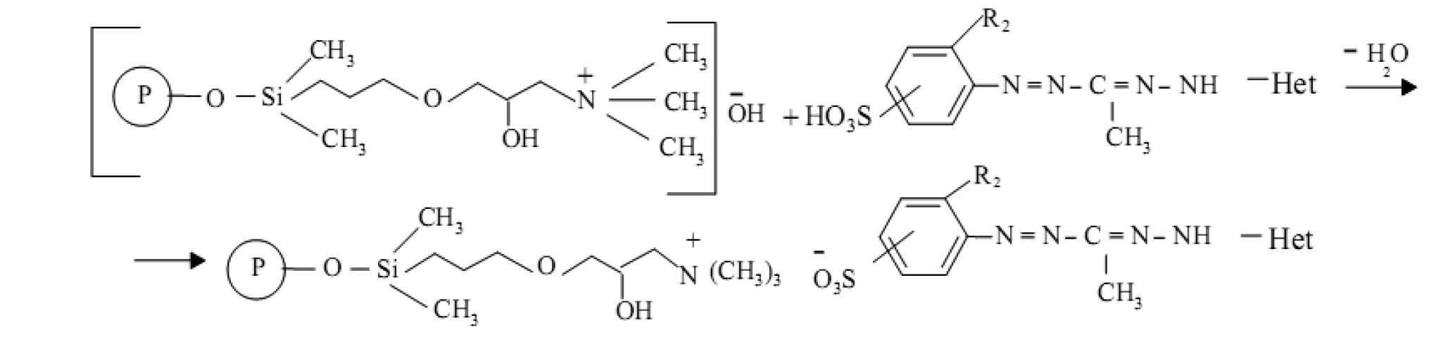 Схема 2. Ионный механизм закрепления формазановых группировок на силикагель ДИАСОРБ-100ТА