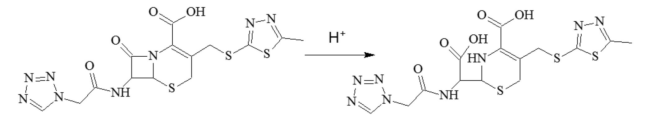 Схема 3. Раскрытие β-лактамного кольца молекуле цефазолина в кислой среде.