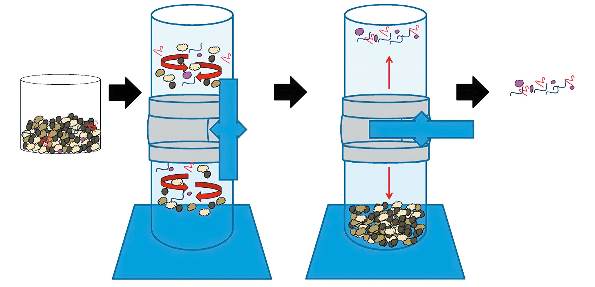 Рис. 4. Схематическое изображение процедуры выделения микропластика с помощью портативного сепаратора.