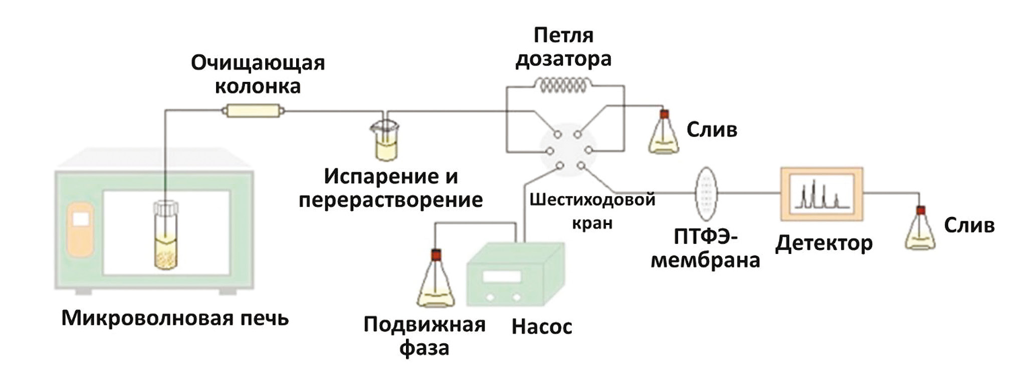 Рис. 4. Установка для проведения микроволновой экстракции в режиме онлайн с последующим определением [103].