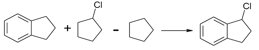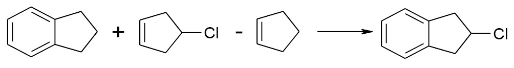 В последнем из вариантов уже отражен такой важный стерический фактор, как наличие атома хлора в заместителе в a-положении к ароматической системе. Для изомерного 2-хлориндана можно выбрать следующие схемы “сборки”: