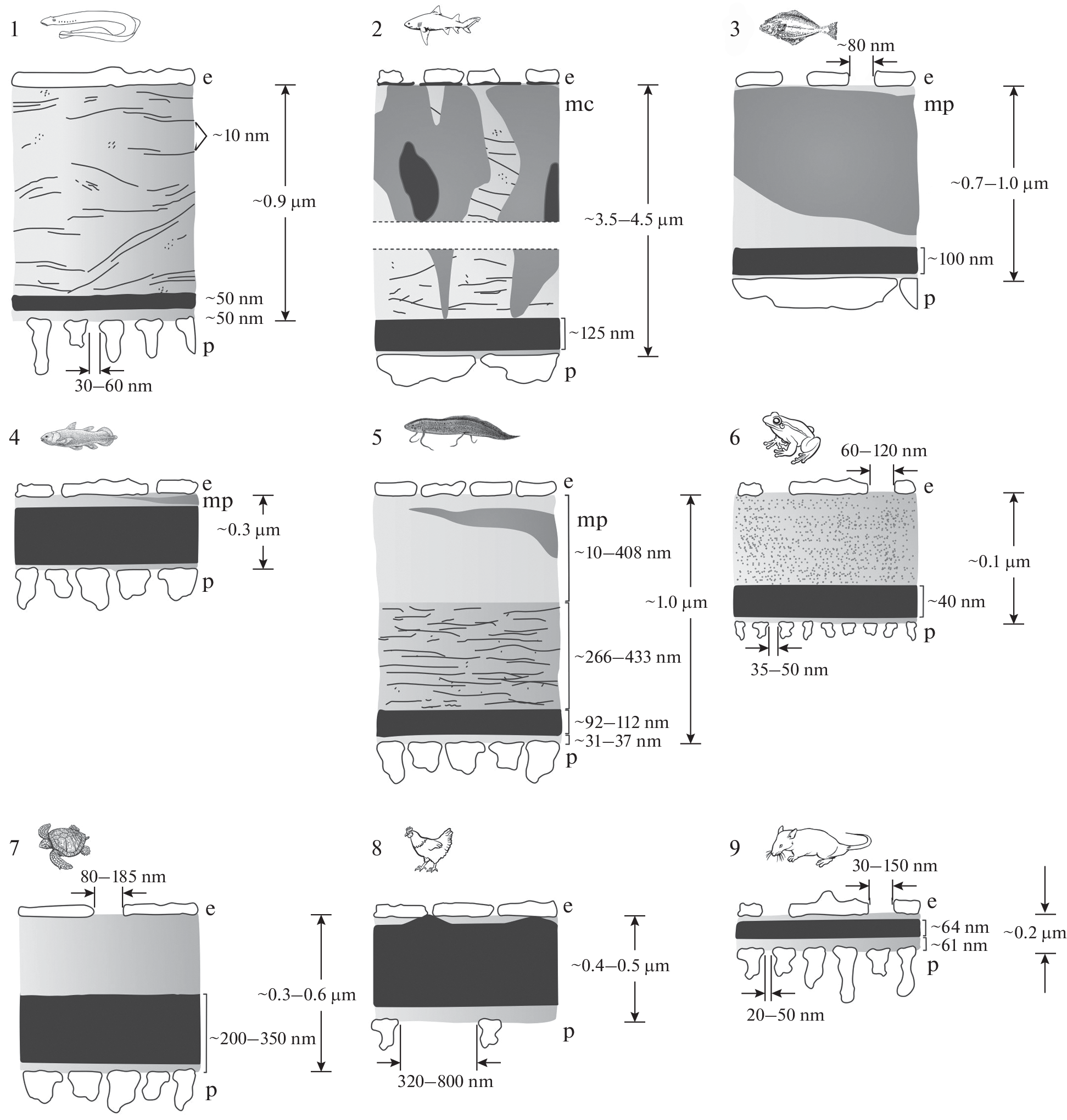 - Decker B, Reale E (1991) The glomerular filtration barrier of the kidney in seven vertebrates classes. Comparative morphological and histochemical observations. Eur J Basic Appl Histochem 35 (1): 15–36.