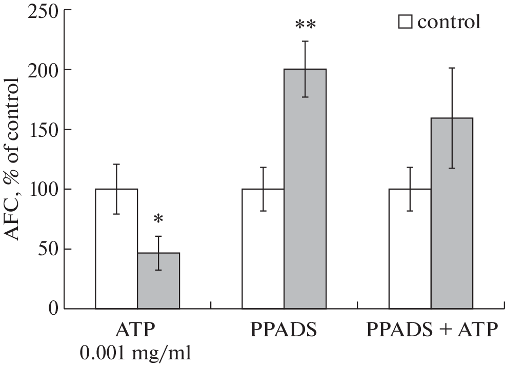 In experiments on rats, the participation of co-mediators of the sympathetic nervous system in the suppressive effect of deep cooling on the antibody-forming function of the spleen was studied. Studied: 1) the effect of deep cooling (decrease in deep temperature by 3–4°С), 2) the introduction of the mediator of the sympathetic nervous system norepinephrine (NE, 1 mg/ml), 3) its co-transmitter ATP (0.01 mg/ml and 10 mg/ml) and 4) P2X-purinergic receptor blocker PPADS on the number of antibody-forming cells of the spleen in response to immunization with sheep erythrocytes. Deep cooling as well as ATP inhibited, while NE stimulated antibody formation in the spleen. Blockade of P2X-purinergic receptors by PPADS stimulated antibody formation in the norm. Against the background of blockade of P2X-purinergic receptors, the inhibitory effect of ATP and deep cooling on antibody formation was not manifested. The results obtained indicate the opposite effects of co-mediators of the sympathetic nervous system on antibody formation in the spleen and suggest that the inhibitory effect of cold on antibody formation in the spleen occurs with the participation of ATP through P2X-purinergic receptors.