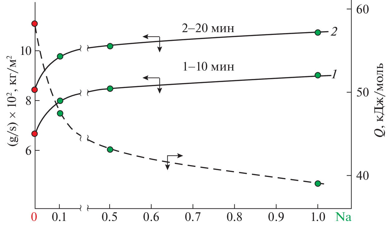 A study is performed of the kinetics of oxidation of lead babbitt with 1.0 wt % of sodium in the 373–473 K range of temperatures. The kinetic and energy parameters of the oxidation of the alloys are determined. It is found that the weight gain of the alloys grows rapidly during the first 15–20 min of oxidation and then acquires an almost constant value. Oxide films that form at the beginning of oxidation have no protective properties, as is confirmed by an increase in the alloys’ rate of oxidation along with temperature in the initial period. It is revealed that sodium dopant additives taken in concentrations of 0.01–1.0 wt % enhance the oxidizability of the original alloy and considerably refine its microstructure. X-ray diffraction analysis shows that the alloys’ products of oxidation consist of oxides (Pb3Sb2O8.47)6.4, PbO, Pb3O4, Pb0.828O2, Sb2O4, Na3SbO3, NaSbO3, and PbSb2O6.