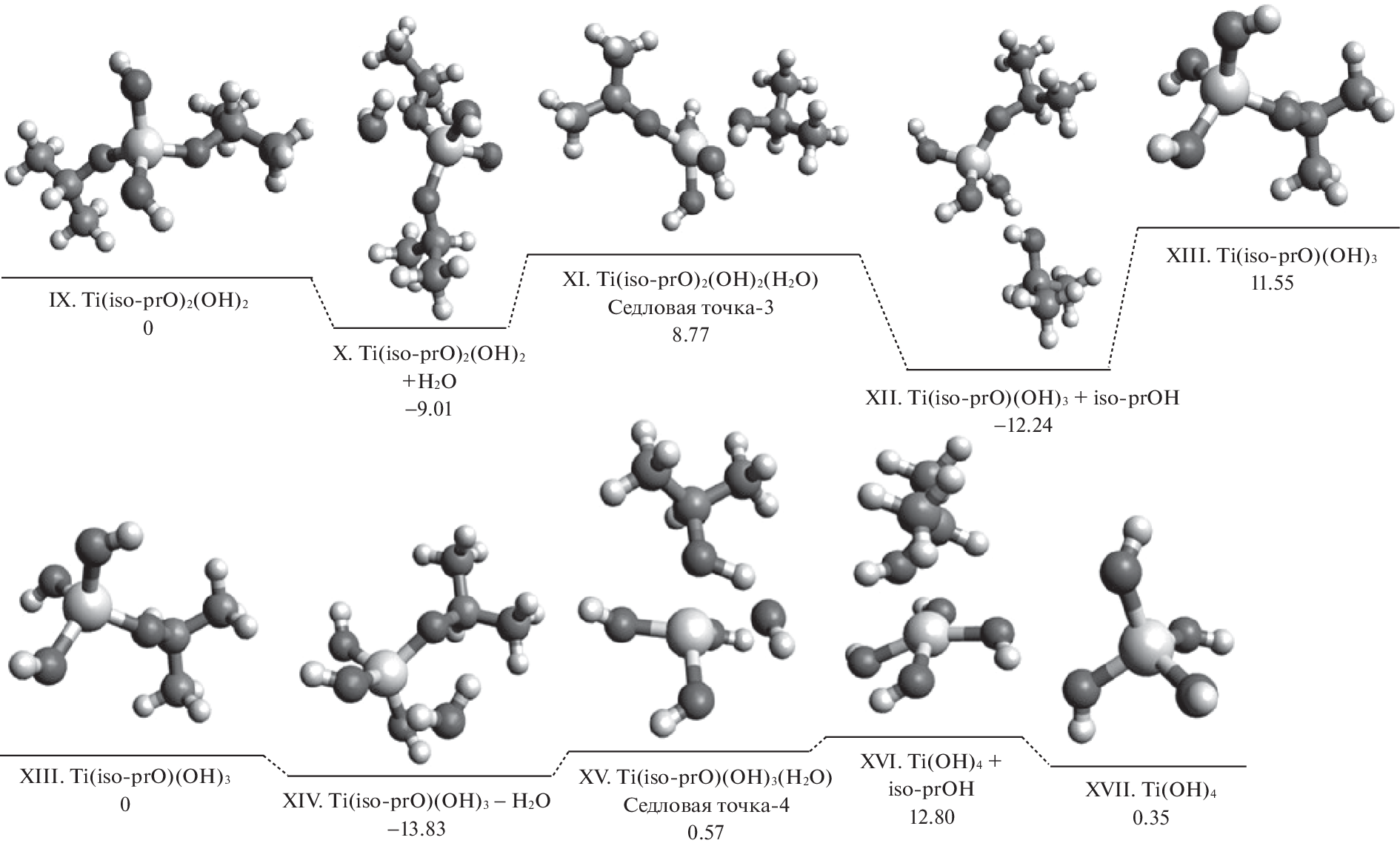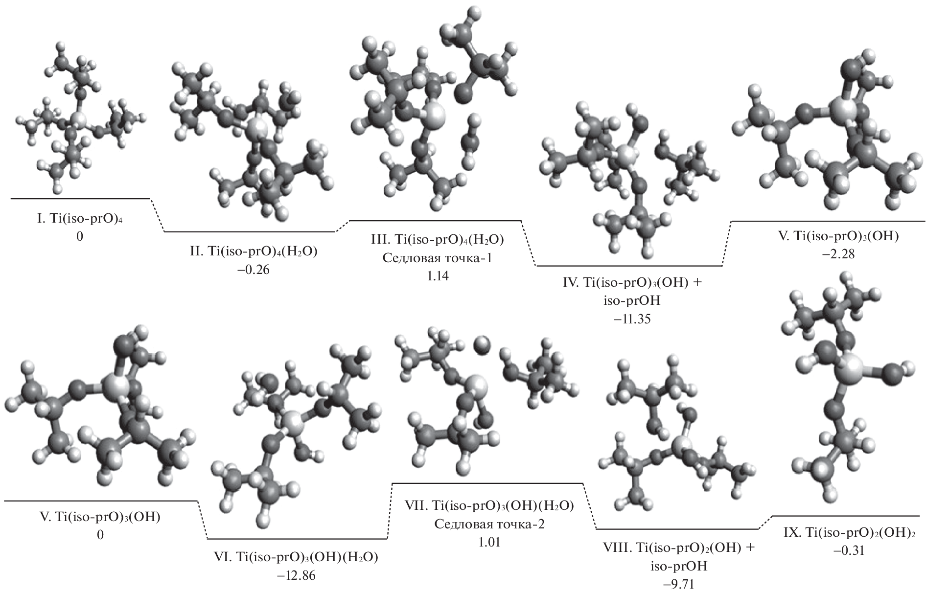A possible mechanism is considered for the formation of nanoscale oxides based on titanium and aluminum isopropoxides in a medium of supercritical CO2 fluid. It is shown that because of intermolecular interactions and high pressure in the system, the supercritical fluid acquires the properties of a condensed medium, the main role of which is to restrain processes of hydrolysis. At the first stage of the hydrolysis of titanium isopropoxide, the water molecule is coordinated in the outer sphere of the central atom due to the formation of intermolecular hydrogen bonds. It is then coordinated into the inner sphere with the formation of a five-coordinate transition state and its destruction, creating a product substituted for the hydroxo group. The next steps proceed in a similar way. The described mechanism agrees with experimental findings and produces nanosized X-ray amorphous titanium oxide. (With aluminum isopropoxide, only the hydrolyzed hydroxo form can be produced.) Results suggest the production of nanosized oxides from isopropoxides in a medium of supercritical CO2 fluid is possible for transitional d-elements.