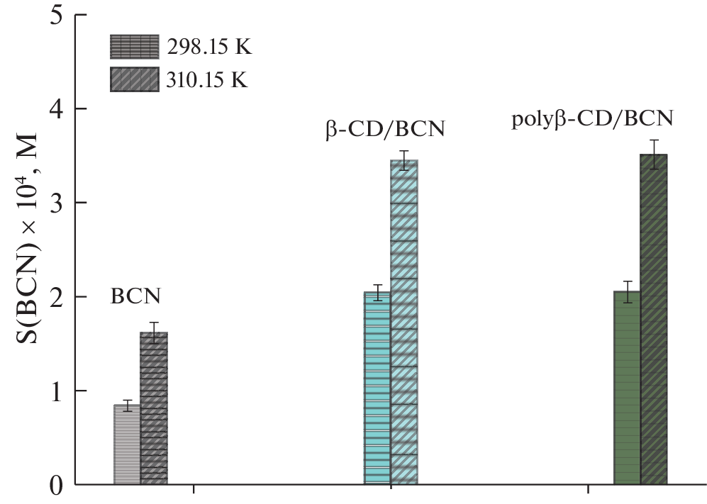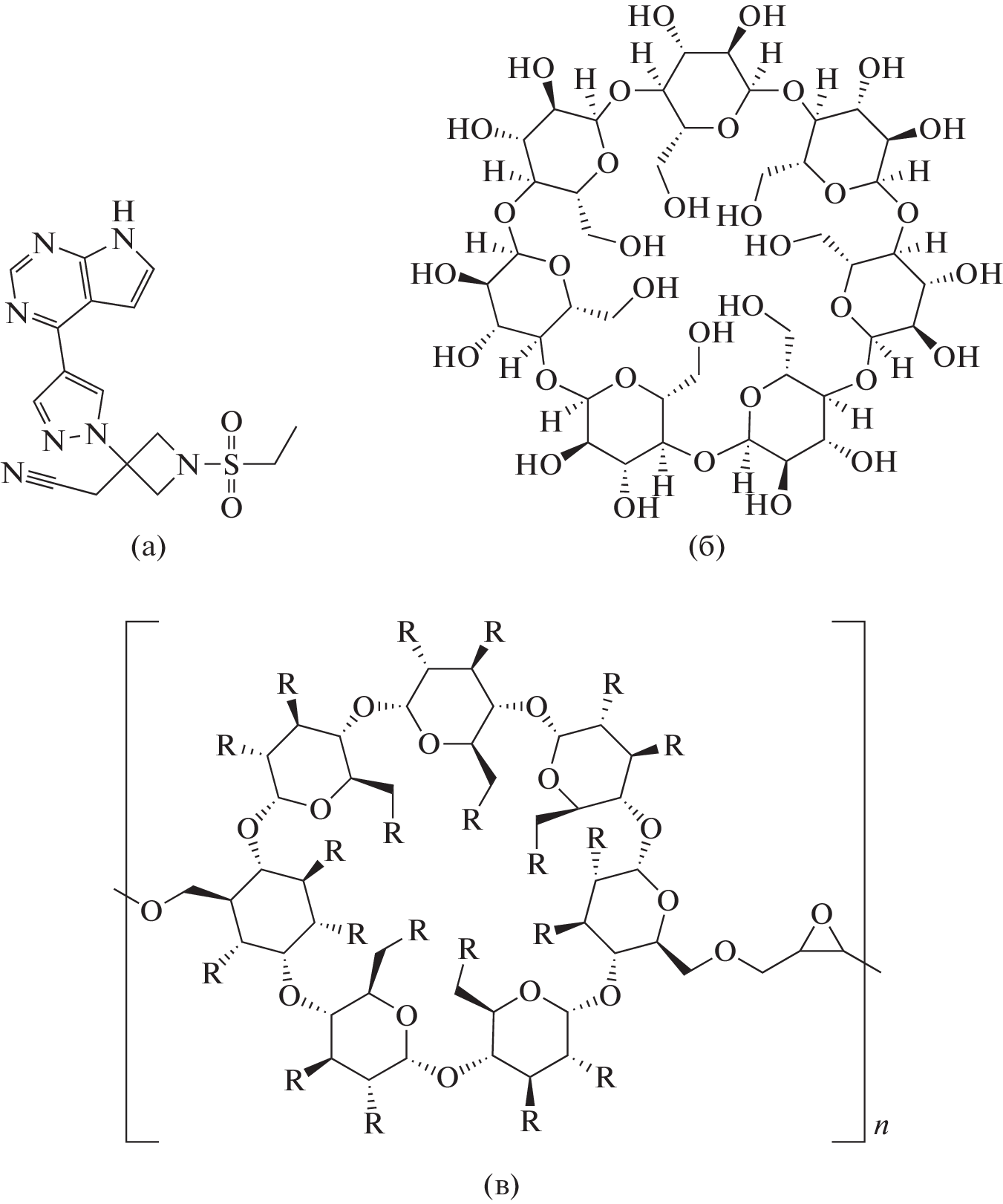 A study is performed of the effect native and polymeric β-cyclodextrins have on the solubility and membrane permeability of baricitinib, a new generation immunomodulator. It is found that native and polymeric β-cyclodextrins exhibit the same solubilizing effect in relation to baricitinib, while their effect on the membrane permeability of the drug differs. The increased solubility of baricitinib is due to the formation of inclusion complexes that have the same stability but are enthalpy-entropy stabilized in native β-cyclodextrin and enthalpy stabilized in polymeric β-cyclodextrin. The effect cyclodextrins on baricitinib’s coefficients of permeability of through a model membrane is discussed in terms of complexation, changes in the viscosity of the medium, and the state of the water boundary layer near the membrane’s surface.