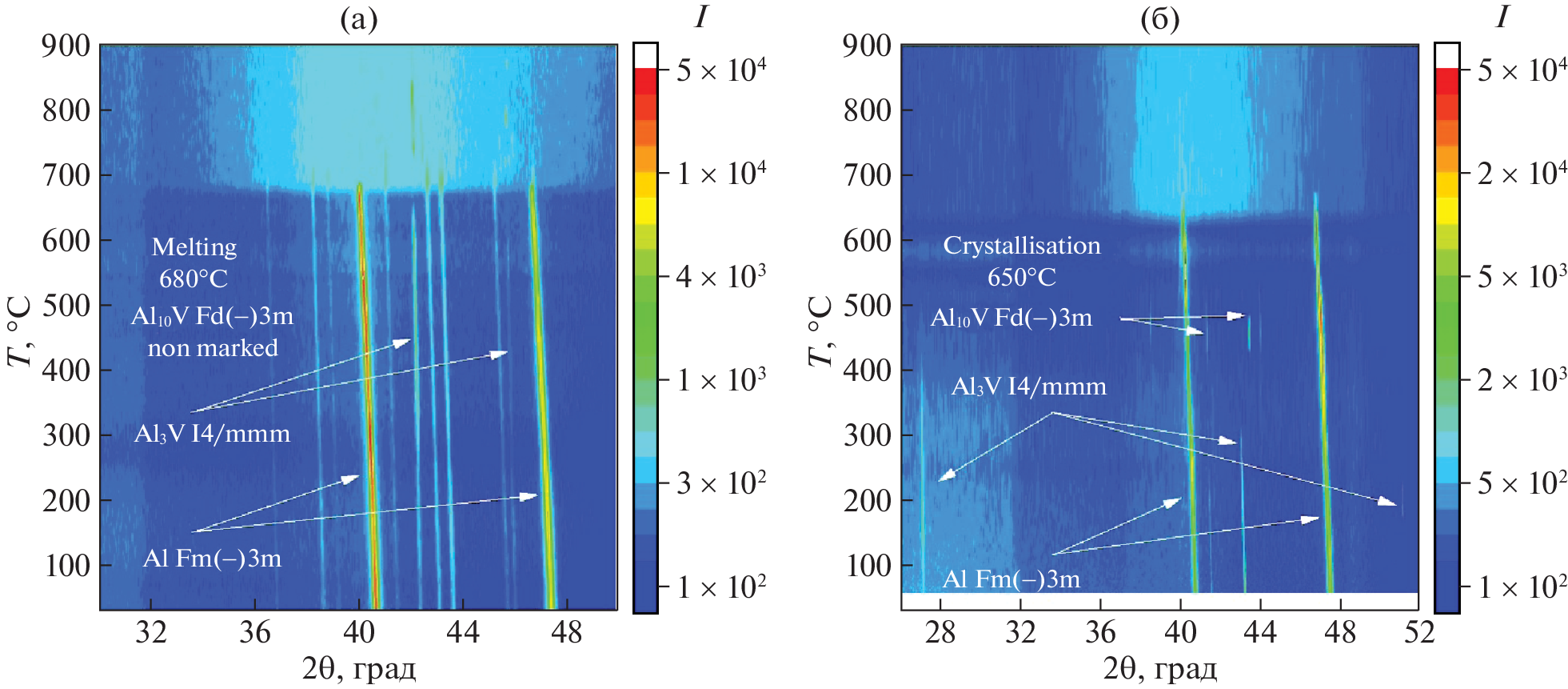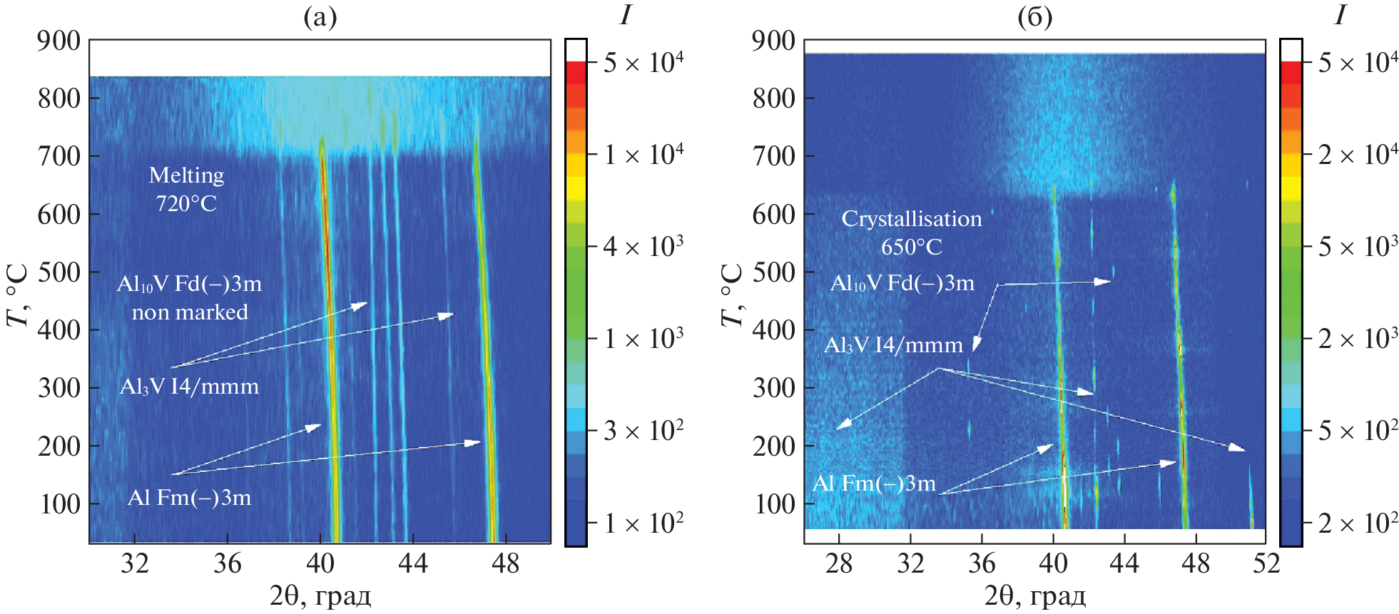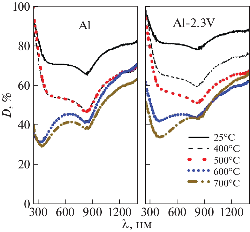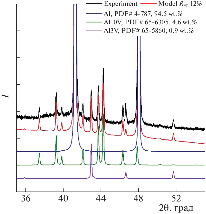 Методами термогравиметрии с дифференциальной сканирующей калориметрией и рентгенодифракционным с использованием синхротронного излучения проанализированы устойчивость к окислению и последовательность образования фаз для чистого алюминия марки АПК и сплава Al–2.3%V при нагреве на воздухе со скоростями до 100°С/мин. Установлено, что увеличение скорости нагрева с 10 до 100°С/мин не оказывает значительного изменения на термическую устойчивость модифицированного порошка Al. Наличие в структуре сплава интерметаллидов Al3V и Al10V, а также малого количества γ-Al2O3 должно способствовать консолидации металлических частиц и снижению пористости получаемого изделия при селективном лазерном сплавлении (СЛС).