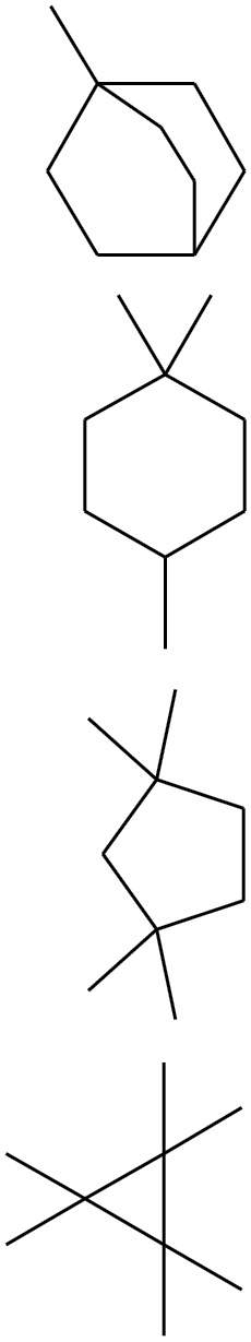 Таблица 2. Схематичное строение структурных группировок из атомов кремния в структурах кремнийорганических соединений