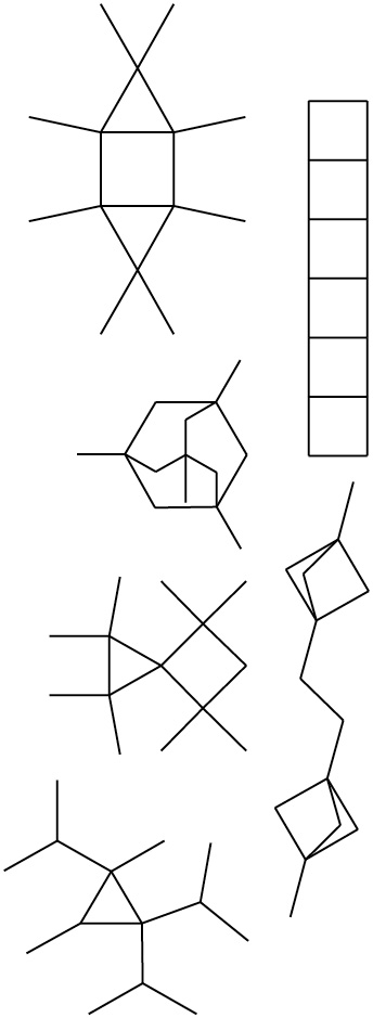 Наиболее характерным КЧ атомов кремния в комплексах SiSim является 4. На долю тетракоординированных атомов кремния приходится 193 комплекса SiSi4 из 223, что составляет 86.5% от изученной выборки. В SiSi4 центральные атомы кремния образуют КП в виде тетраэдра, собственная симметрия которого понижена до С3 (8 комплексов), С2 (8 комплексов) и С1 (177 комплексов). Величины валентных углов Si–Si–Si для тетракоординированных комплексов изменяются в диапазоне от 53.9 до 164.0°, что, как и в предыдущих примерах, обусловлено включением таких атомов в конденсированные, поли- и спироциклические системы (табл. 2). Гистограмма распределения валентных углов Si–Si–Si для комплексов SiSi4 представлена на рис. 1г.