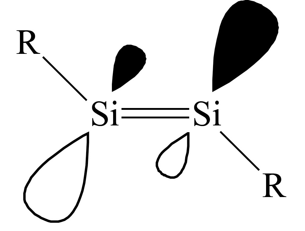 Рис. 2. Схематичное изображение бокового перекрывания sp2-гибридных орбиталей атомов кремния при образовании тройной Si≡Si-связи