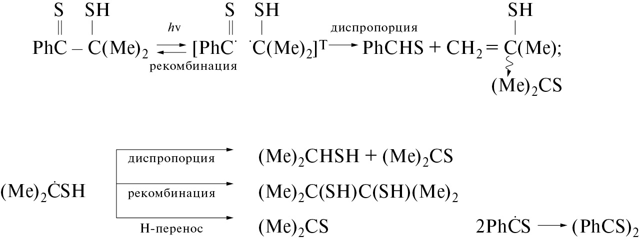 Радикальный механизм фоторазложения 2-метил-1-фенил-2-сульфанилпропан-1-тиона включает очень важную стадию – регенерацию исходного тиона в первичной радикальной паре.