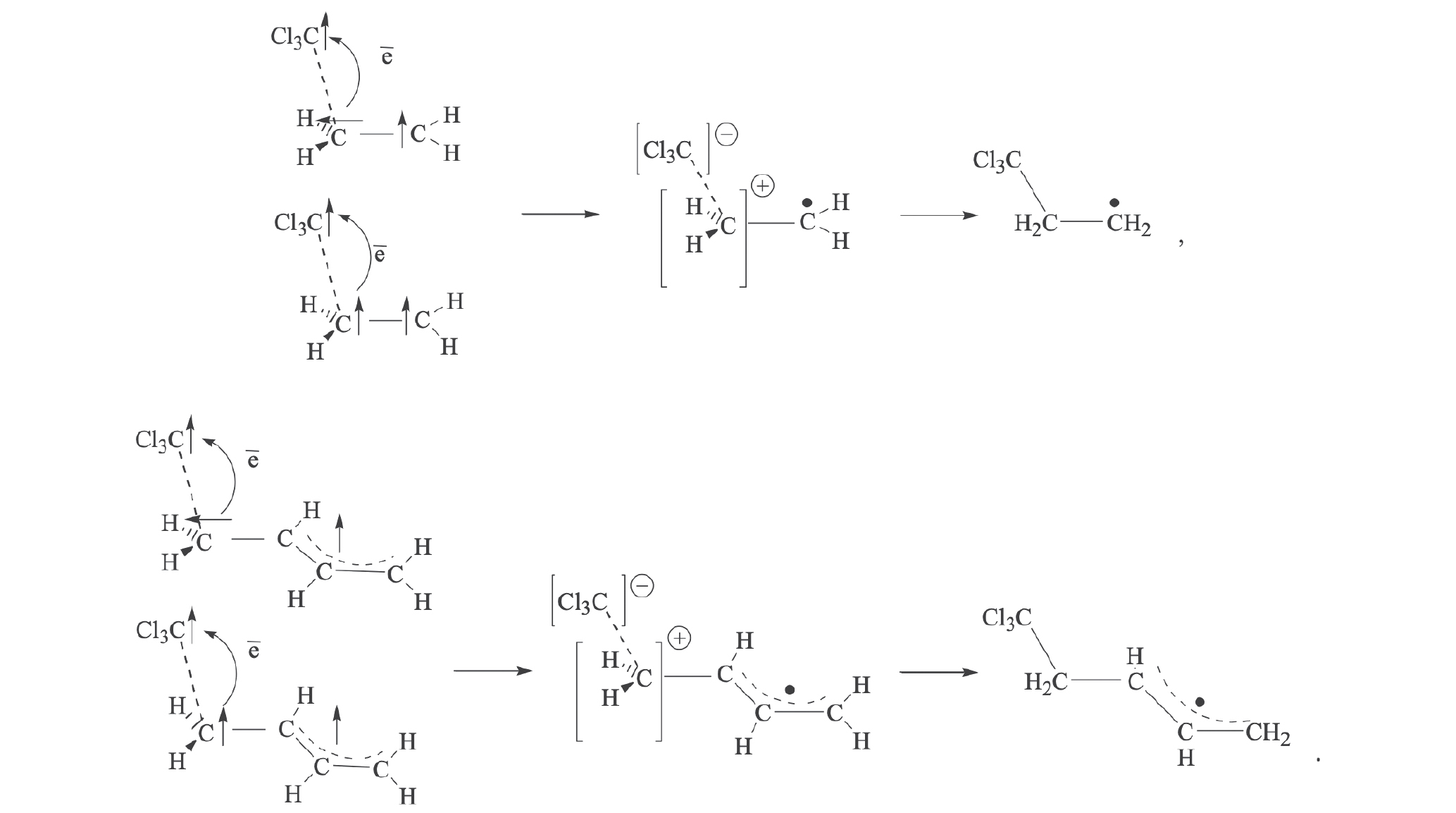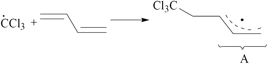 ĊCl3 + CH2 == CH2 → Cl3CCH2ĊH2 (1)