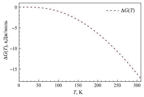 Рис. 5. Свободная энергия Гиббса ∆G(T) для ZnWO4 в интервале 0–301 K.