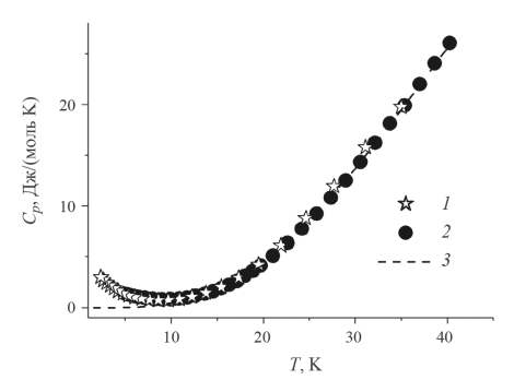 Сглаженные значения теплоемкости (Дж/(моль K)) (рис. 5, 2) практически совпадают с опубликованной ранее [16] зависимостью (рис. 5, 3)