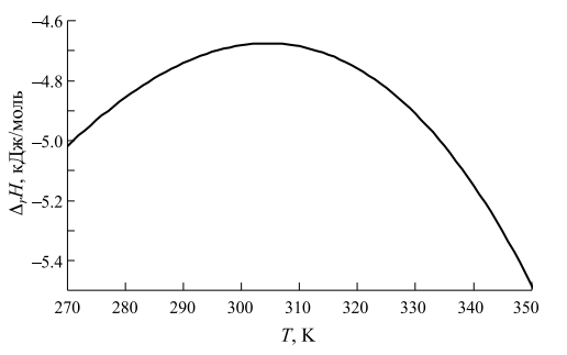 Ранее мы получили экспериментальные данные о тепловых эффектах реакции этерификации в этих системах при 313.13 K [22, 23]. Сравнение этих величин с литературными данными для других температур (табл. 1), на первый взгляд, приводит к противоречивому заключению: температурные изменения DrHT, для двух эфиров носят противоположный характер. Однако, эти изменения ненамного превышают обычные экспериментальные погрешности определения энтальпии реакции, ~0.3 кДж/моль [22]. Кроме того, отметим, что некоторые данные получены не вполне прямым способом. В частности, в работе 1958 года [25], выполненной в известной термохимической группе проф. Wadsö Лундского университета, исследовались процессы гидролиза эфиров: как известно скорость этой реакции мала в сравнении со скоростью этерификации, что также может приводить к существенным погрешностям.