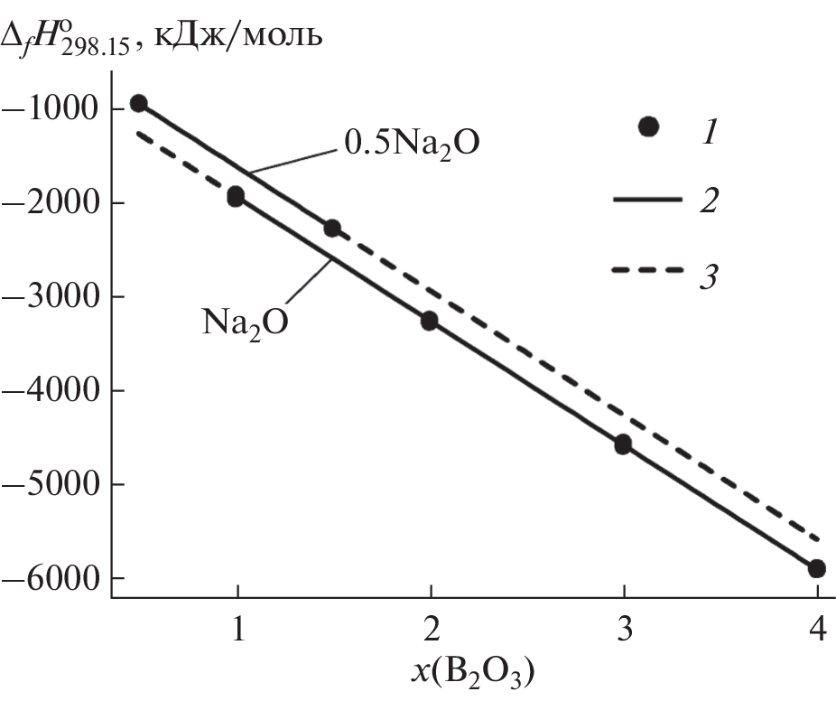 A structure–property correlation has been developed, which makes it possible to choose the optimal values of the enthalpy of formation of alkali metal borates, for which, according to the data of various experimental works and reference publications, wide variations are observed. Using this correlation, the enthalpy of formation of unstudied alkali metal borates can be reasonably estimated. It has been found that the contribution of B2O3 to the enthalpy of formation is the same not only for alkali metal borates but also for Ba, Ca, and Pb borates, for whose enthalpy of formation a structure–property correlation has also been established. This suggests the suitability of the obtained correlations for estimating the enthalpy of formation in the borate series, where the value is known only for one member of the series, as well as the possibility of estimating the enthalpy of formation of mixed borates of different metals.