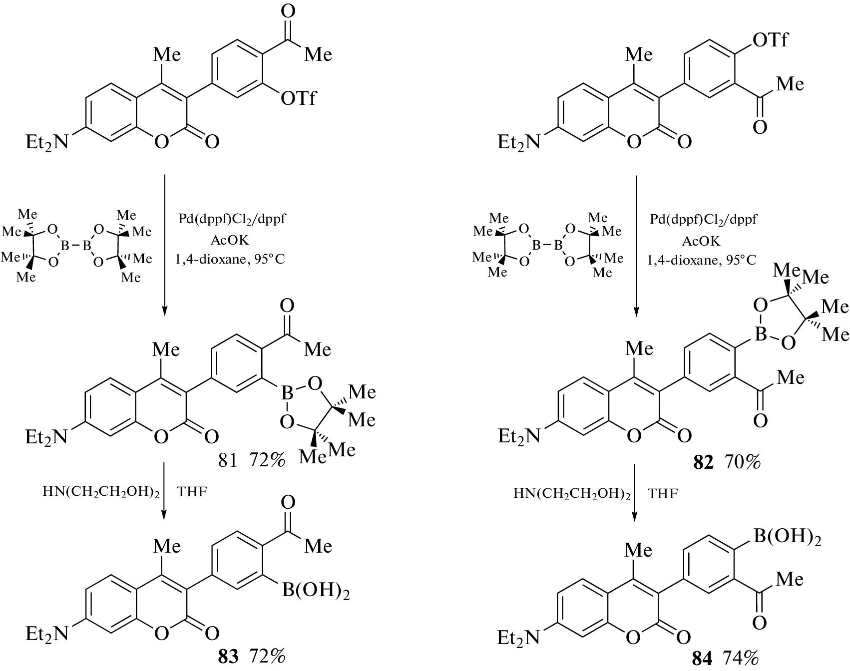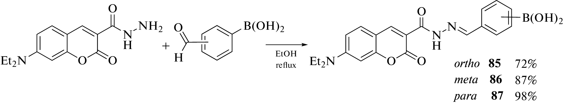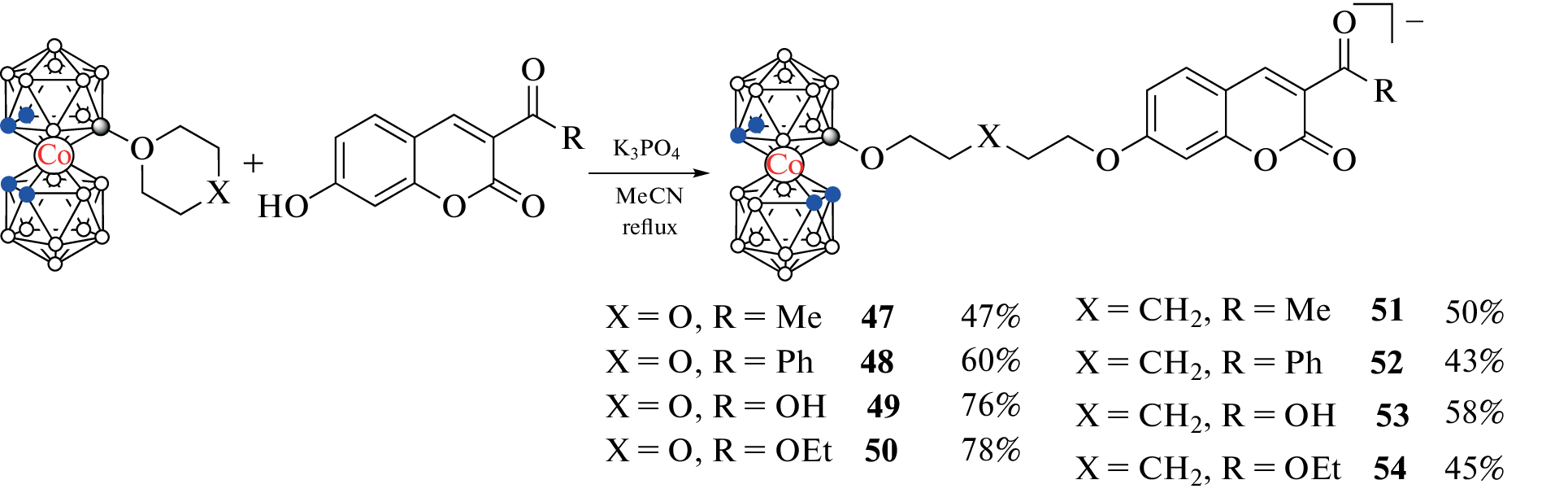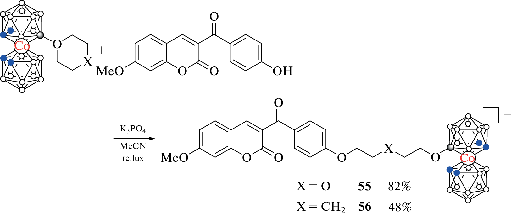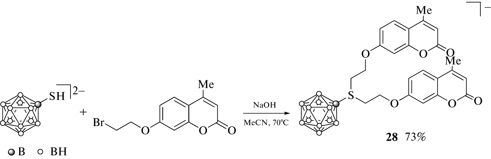 Synthesis methods, properties, and application fields of various boron-containing coumarin derivatives are summarized. Particular attention is paid to derivatives with various polyhedral boron clusters as substituents, such as carboranes, metallacarboranes, and the closo-dodecaborate anion. Derivatives of coumarin with simple organoboron compounds, boronic acids and their esters, are also considered.