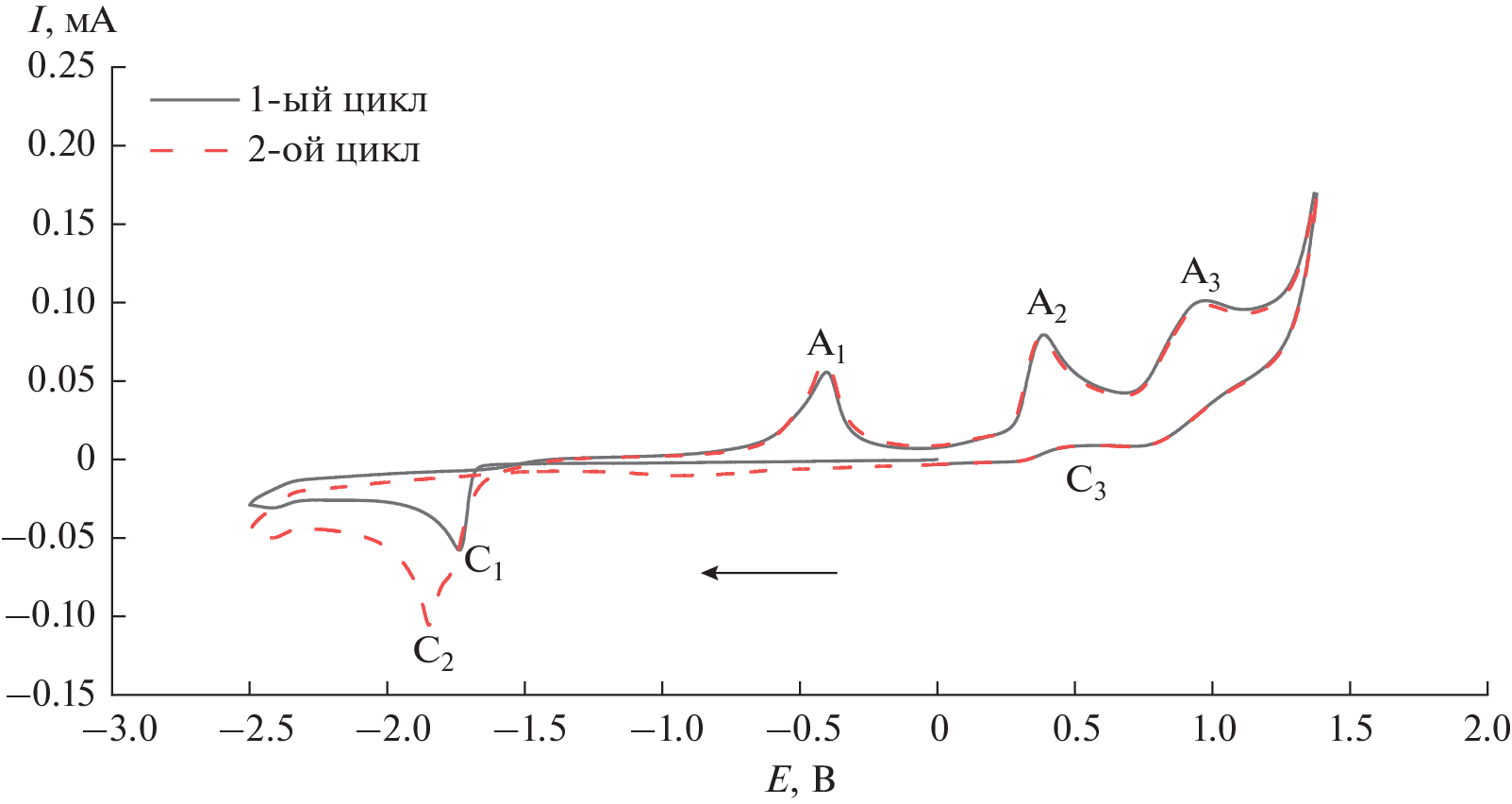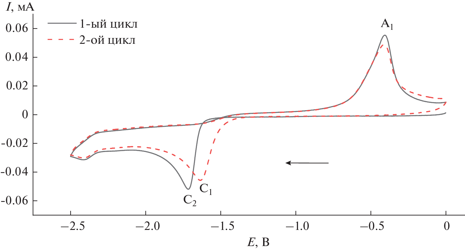 = –1.70 V vs Ag/AgNO3, 1 × 10–2 М in CH3CN), resulting in formation of cobalt metal adsorbed on the surface of working electrode.