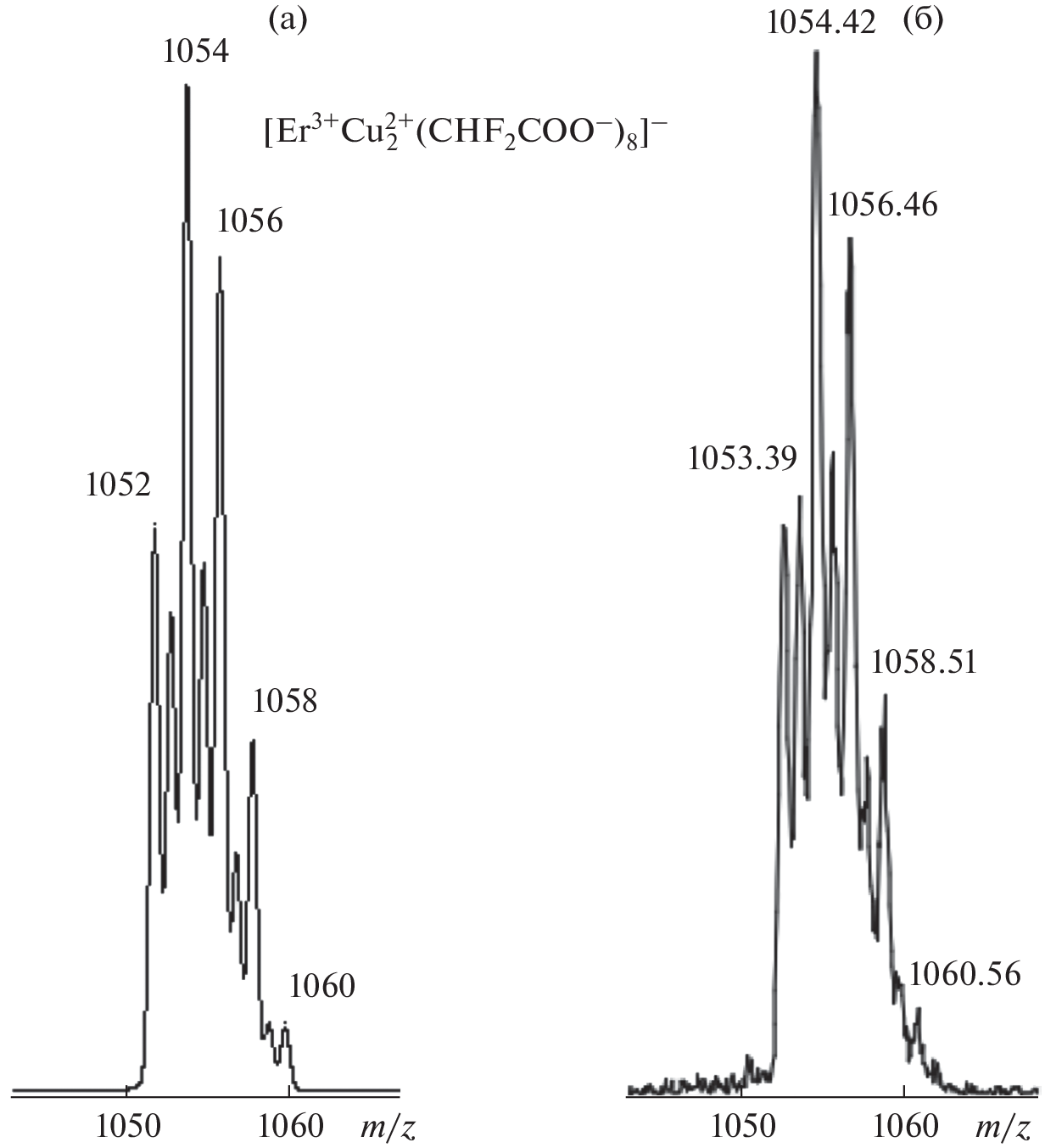 Взаимодействием индивидуальных галогенацетатов меди и РЗЭ в водном растворе получены новые пятиядерные комплексы [Cu3M2(CHF2COO)12(H2O)8]·2H2O, где M = Er (I) и Nd (II). Молекулярное строение комплекса I установлено методом РСА монокристалла (CIF file CCDC № 2159724). Особенности строения комплексов и природа карбоксилатных мостиков между металлоцентрами влияют на свойства этих комплексов, поэтому для сравнения были получены два аналогичных соединения с монохлорацетат-лигандом – [Cu3M2(СH2ClCOO)12(H2O)8]·2H2O, где M = Er (III) и Nd (IV). Соединения III и IV изоструктурны ранее изученным комплексам данного типа с другими РЗЭ. Соединения I–IV охарактеризованы методами рентгеновской дифракции и ИК-спектроскопии, изучена их термическая стабильность. Для подтверждения формирования предшественников молекулярной формы кристаллического соединения I определены формы комплексов в растворе методом ESI-MS.