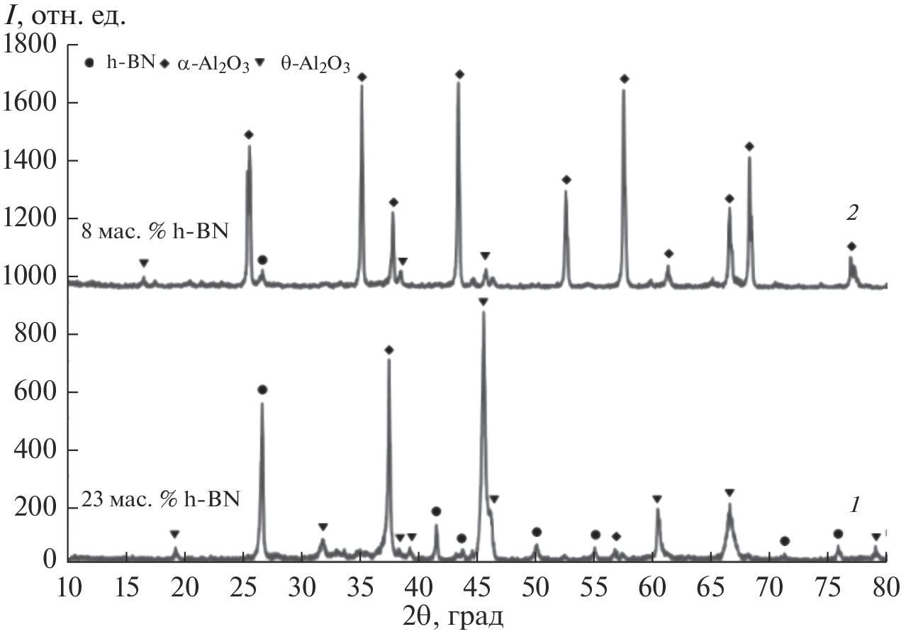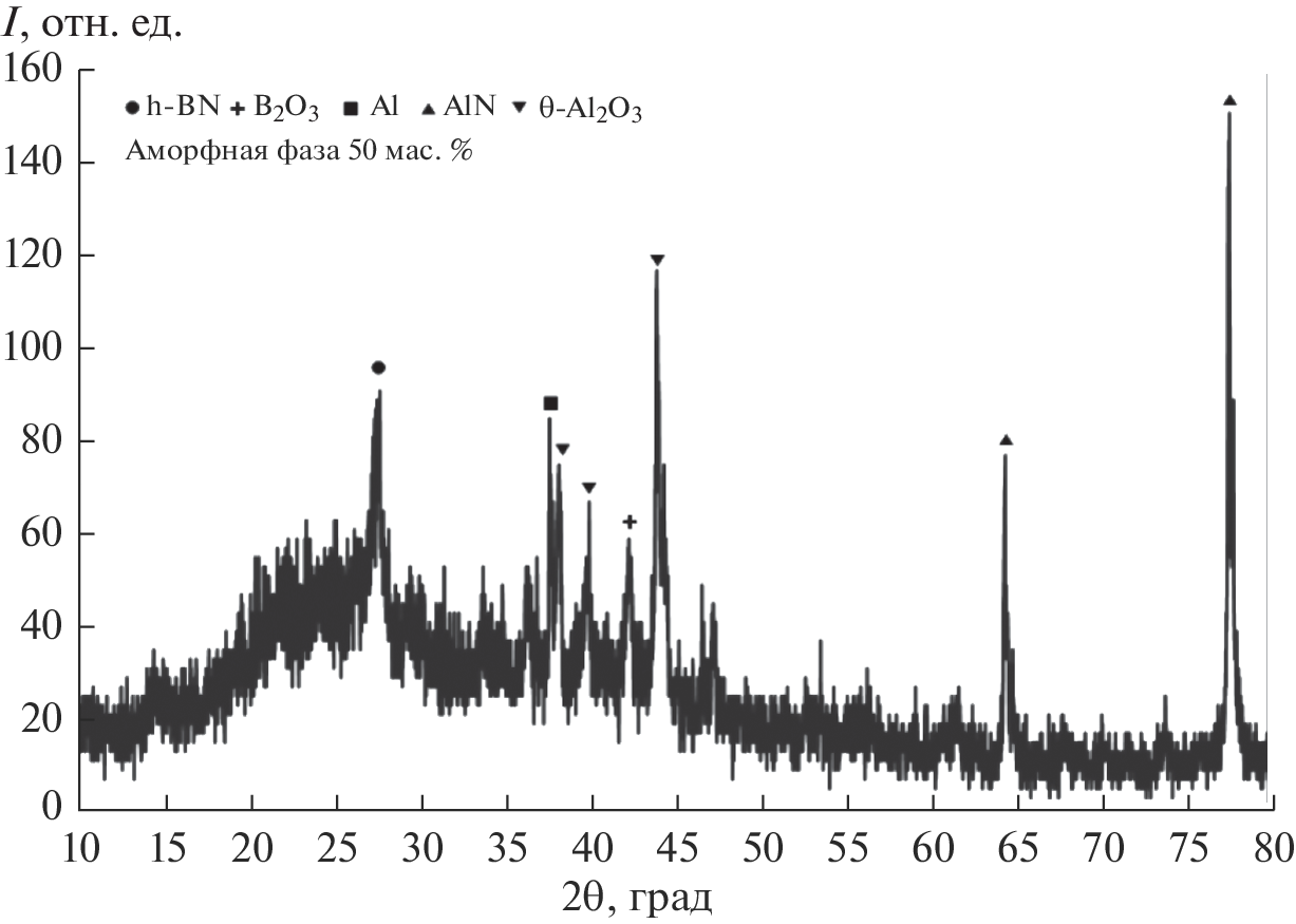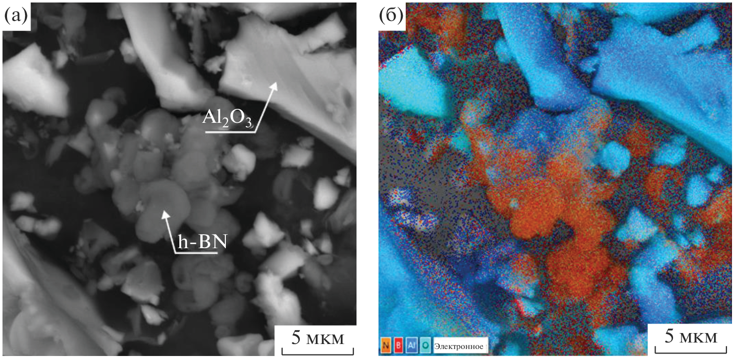 The paper presents the results of studies of the self-propagating high temperature synthesis (SHS) of boron nitride via chemical reduction of boron oxide with aluminum in a nitrogen medium. The phase composition of the powder reaction products depending on the nitrogen pressure during the synthesis was studied by X-ray diffraction. It was found that SHS in the B2O3–Al system gives the BN–Al2O3 powder material containing 20–28 wt % hexagonal boron nitride depending on the nitrogen pressure. Microstructure examination showed that the obtained powder materials contains separate hexagonal BN particles with <3 μm size. The differences in the density and morphology of BN and Al2O3 determine the possibility of BN isolation from the obtained powder mixture by the pneumatic powder separation methods.