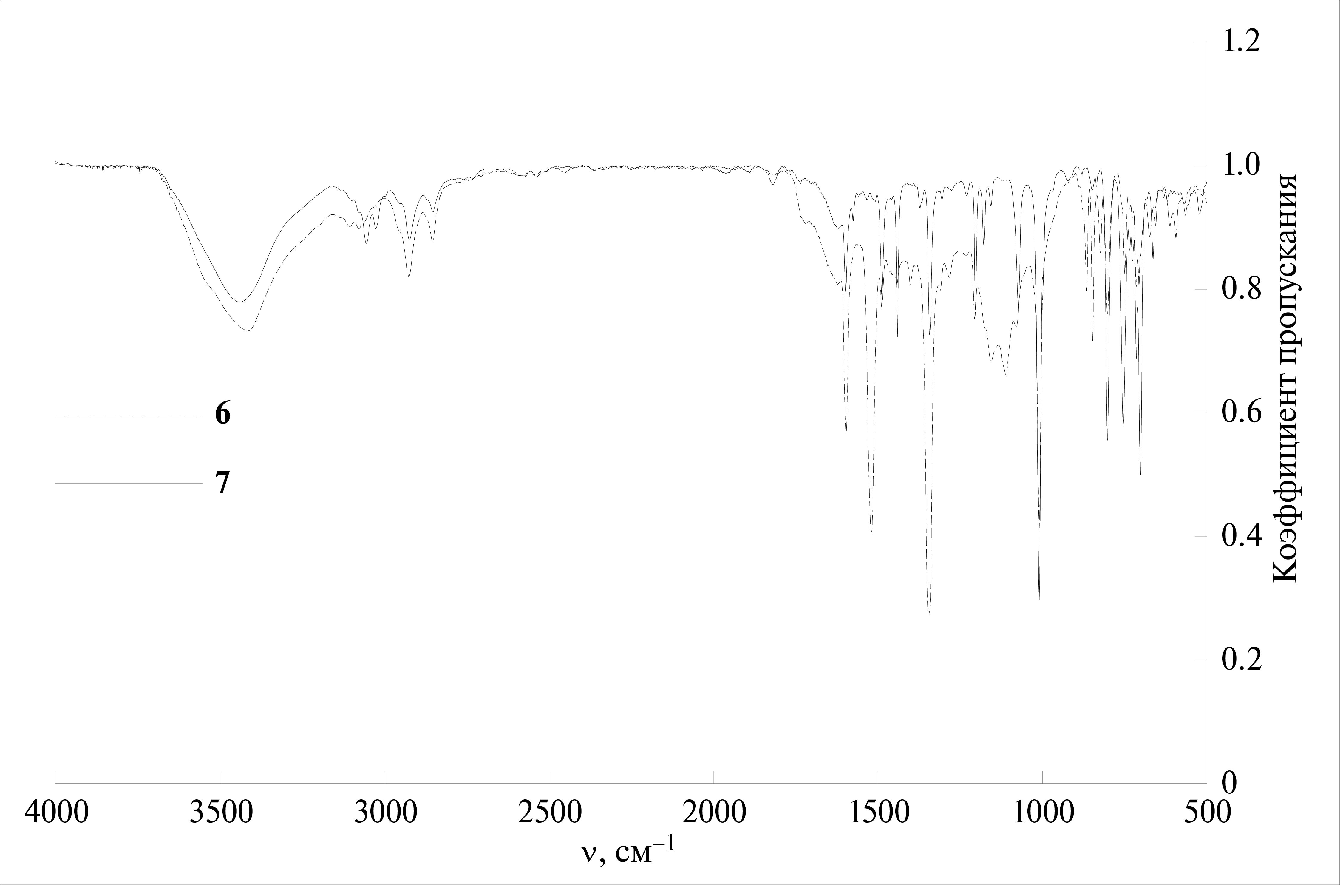 Рис. 4. ИК-спектры комплексов 6, 7 в таблетках KBr.