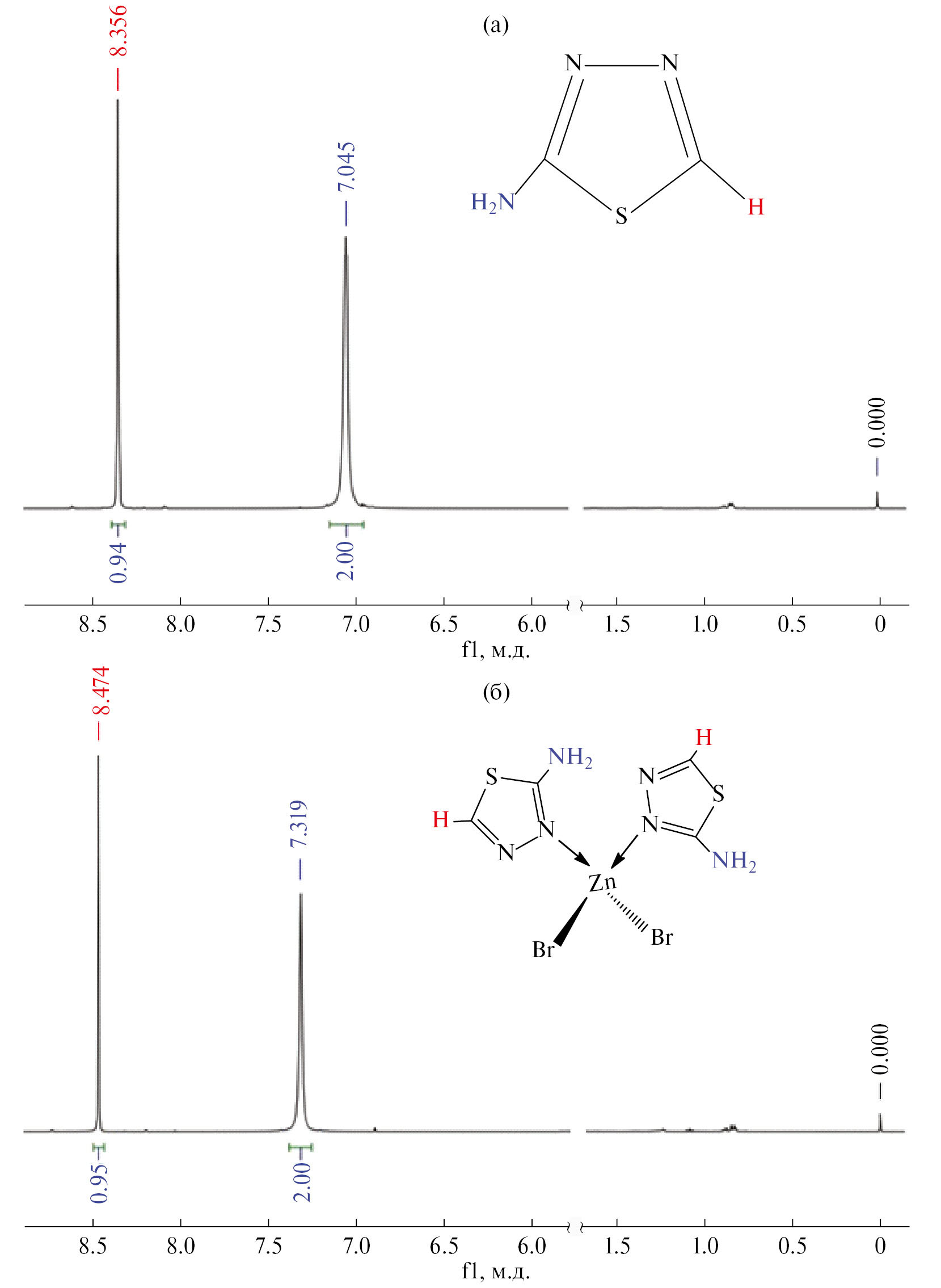 Все эксперименты, связанные с синтезом комплексов I–VI, проводили при температуре 70–75°С с использованием коммерчески доступных химических реактивов без дополнительной очистки: ZnCl2 · · 2H2O, ZnBr2 · 2H2O, ZnI2 · 2H2O, Zn(NO3)2 · nH2O (ч. д. а.), 2-аминотиадиазола-1,3,4 (≥99.0%), 2-амино-5-метилтиадиазола-1,3,4 (≥98.0%) (Аlibaba.com), а также растворителя EtOH (х. ч., перегнанный).