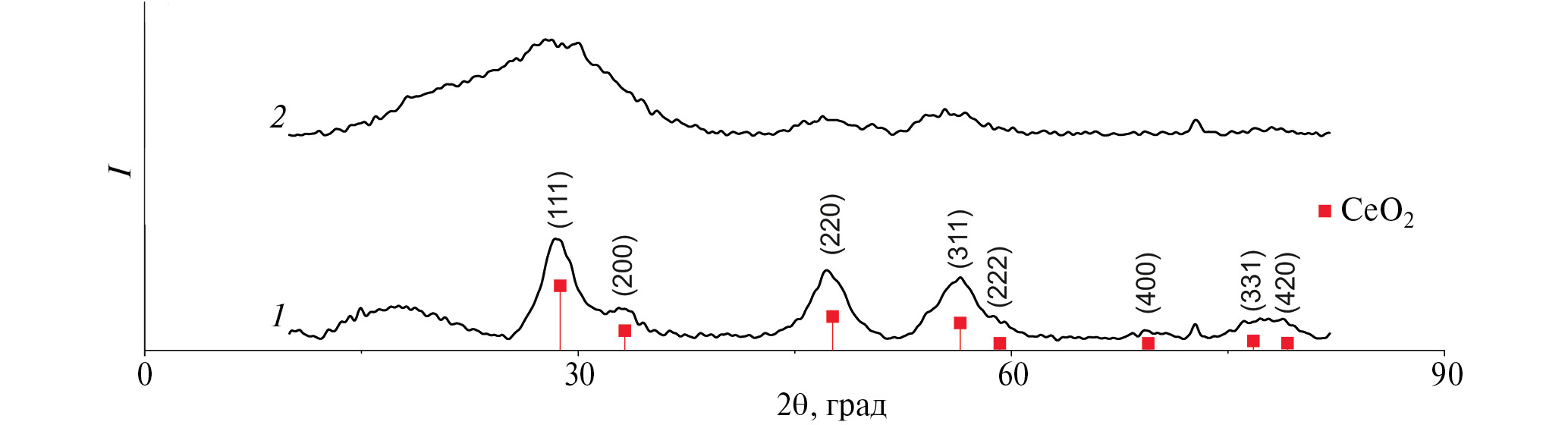 Широкий спектр традиционных и перспективных областей применения диоксида церия связан со свойствами этого вещества: стабильностью соединений в двух степенях окисления (Ce3+ и Сe4+), легкостью редокс-перехода Ce3+/Ce4+, выраженным влиянием размерного фактора на кислородную нестехиометрию CeO2–x и значение параметра элементарной ячейки, который может возрастать при уменьшении размера частиц [1, 2, 5].