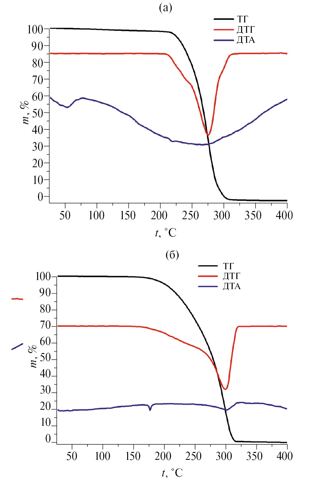 Термогравиметрический анализ (ТГА) осуществляли на приборе TG 209 F1 Iris (Германия). Измерения проводили в потоке гелия в интервале температур 25–450°C при токе газа 60 мл/мин, скорости нагрева 10 град/мин в открытых алюминиевых тиглях.