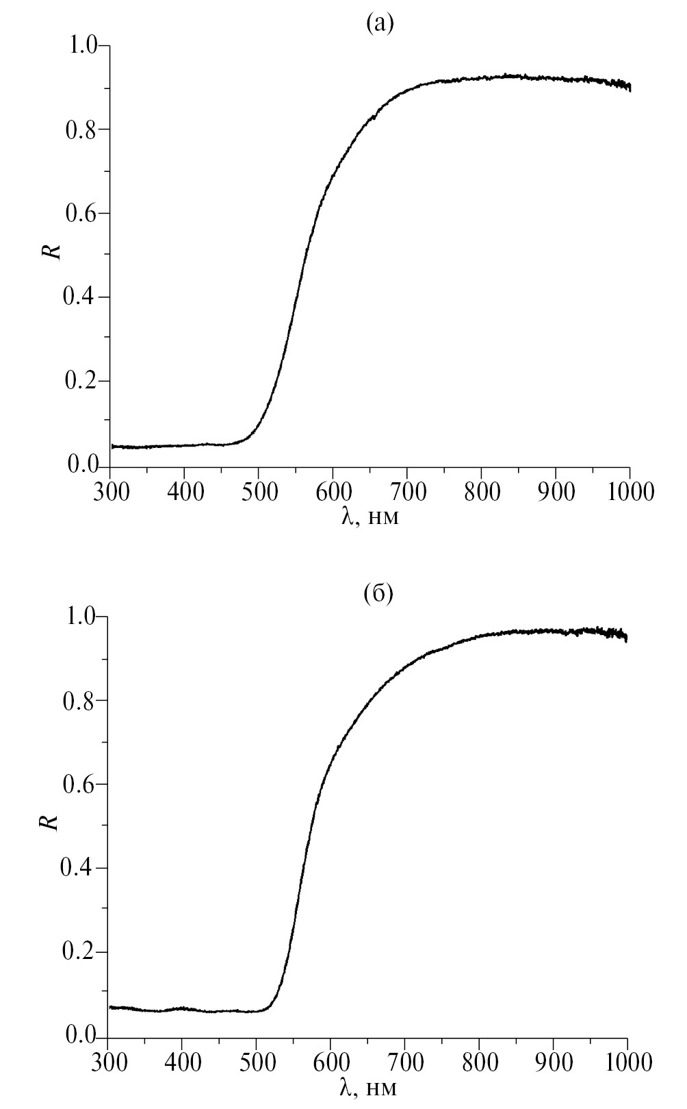 Рис. 6. Спектры диффузного отражения соединений 1 (а) и 2 (б)