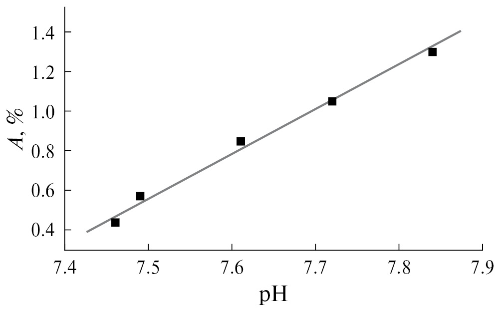 Рис. 8. Зависимость значений pH от химической деградации образца в модельном трис-растворе