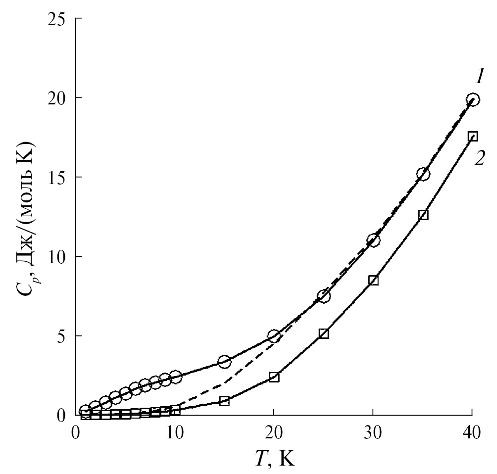 Примечание. Курсивом выделены значения теплоемкости, полученные в результате экстраполяции уравнения (1) к абсолютному нулю; a значение соответствует стандартному отклонению.