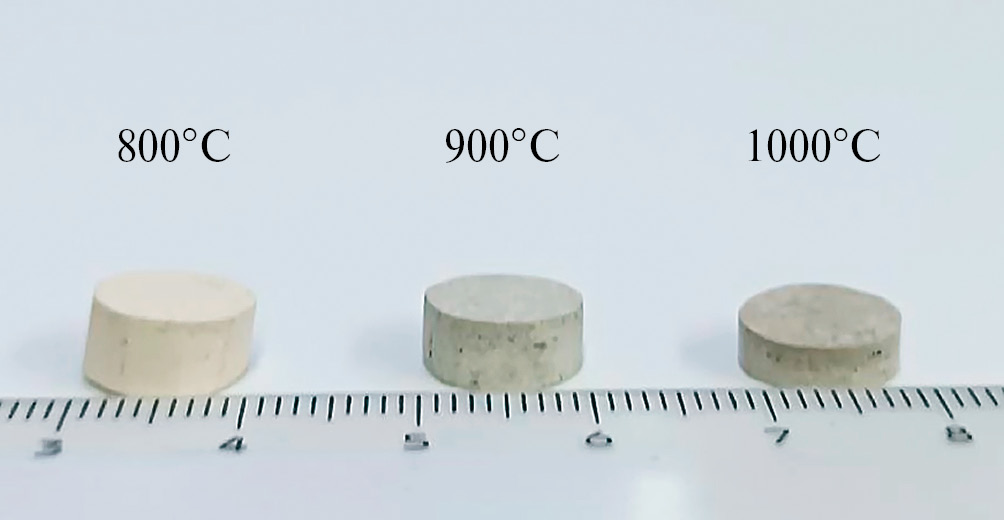 Рис. 7. Образцы керамических материалов на основе цирконосиликата, полученных ИПС-синтезом при температуре от 800 до 1000°С.