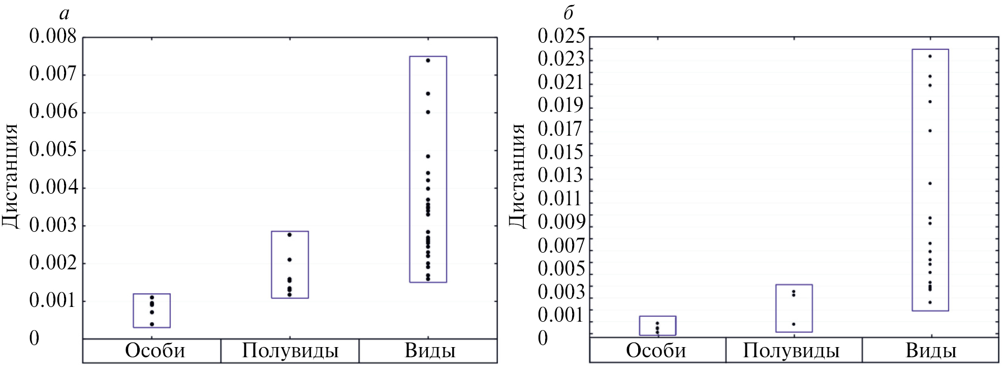 Таксоны | Дистанции | Таксоны | Дистанции |