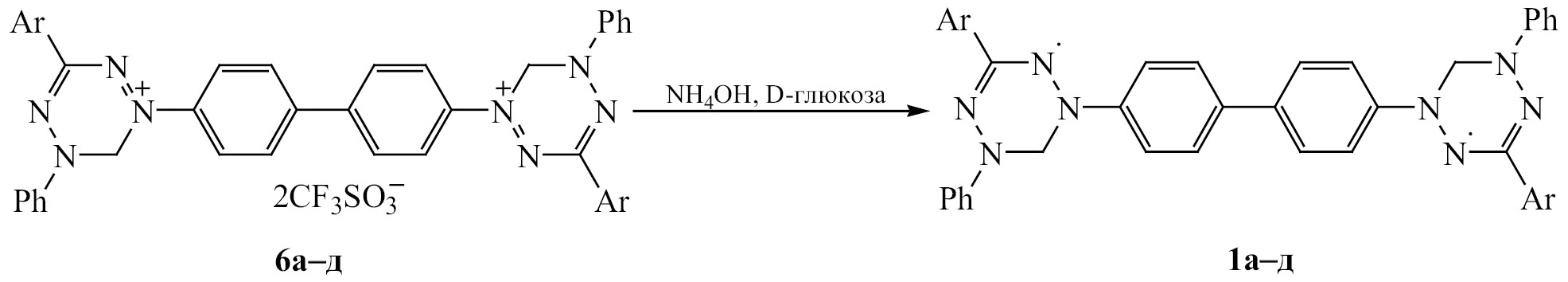 С целью оптимизации синтеза бирадикалов 1а–д решено было использовать разработанный нами [18] подход, основанный на промежуточном получении соответствующих солей тетразиния.
