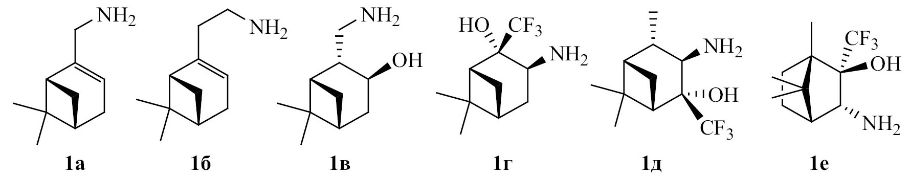 Таким образом, на основе пинановых и борнанового аминов, в том числе CF3-содержащих, получены новые полифункциональные оптически активные сульфонамиды c фрагментом 4-аминобензолсульфонамида. Разработан способ получения ранее неизвестного 10-аминоизопинокамфеола на основе (–)-β-пинена. В результате тестирования полученных сульфонамидов выявлено, что они не проявляют противомикробную активность в отношении штаммов S. aureus, P. aeruginosa и C. albicans 703.