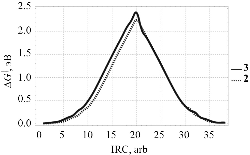 Рис. 3. Энергия ΔG‡ переходного состояния образования двух радикальных пар 2 и 3 в триплетном состоянии.