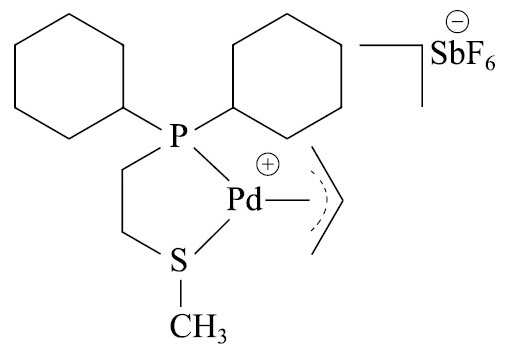 Синтез катионного аллильного комплекса палладия с (2-метилтиоэтил)дициклогексилфосфином. Выход 78%.