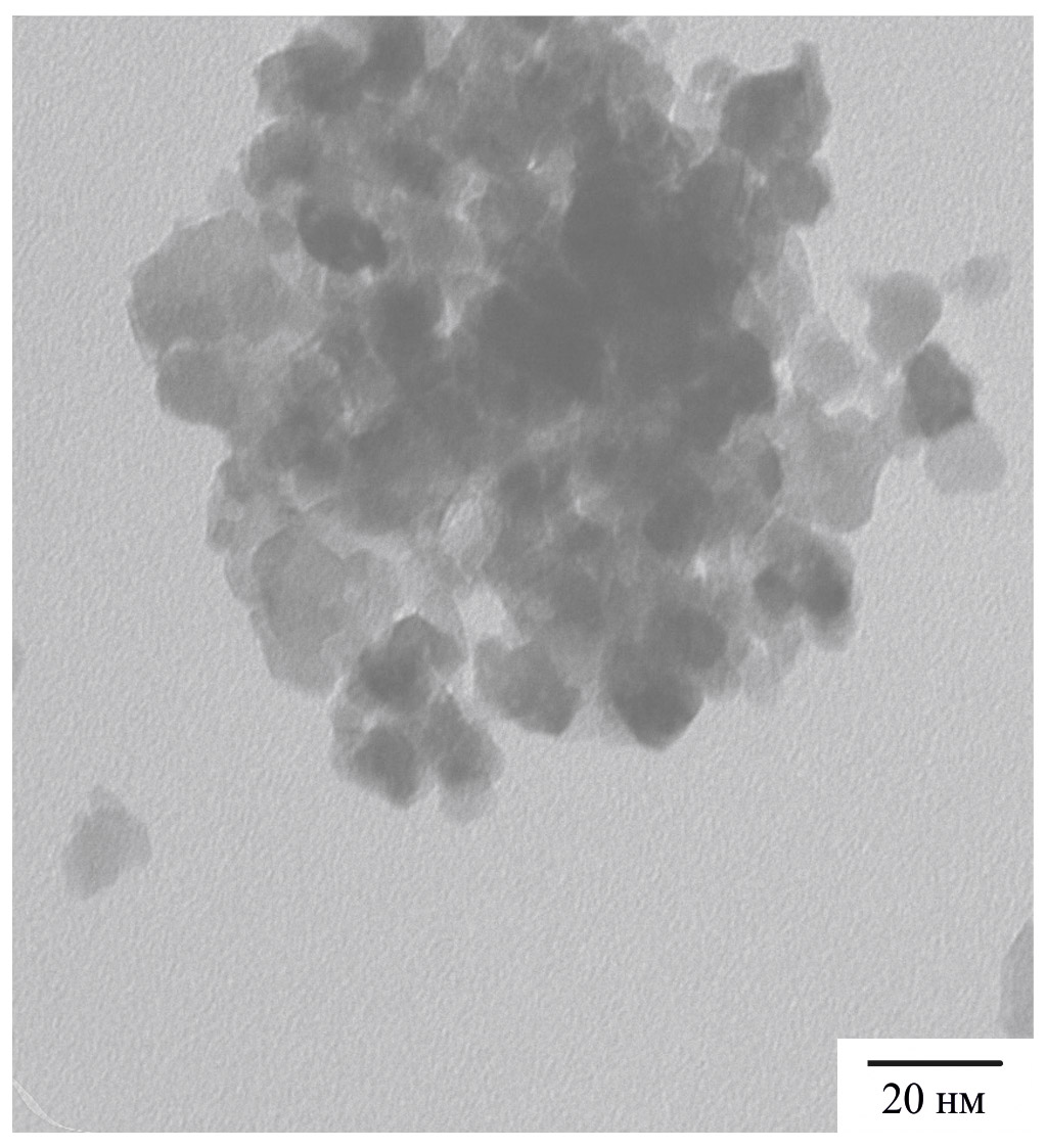 3. Рис. 2. Микроснимок образца 0.5% PdO/Ce0.85Zr0.15La0.05O2–δ, полученный методом просвечивающей электронной микроскопии.